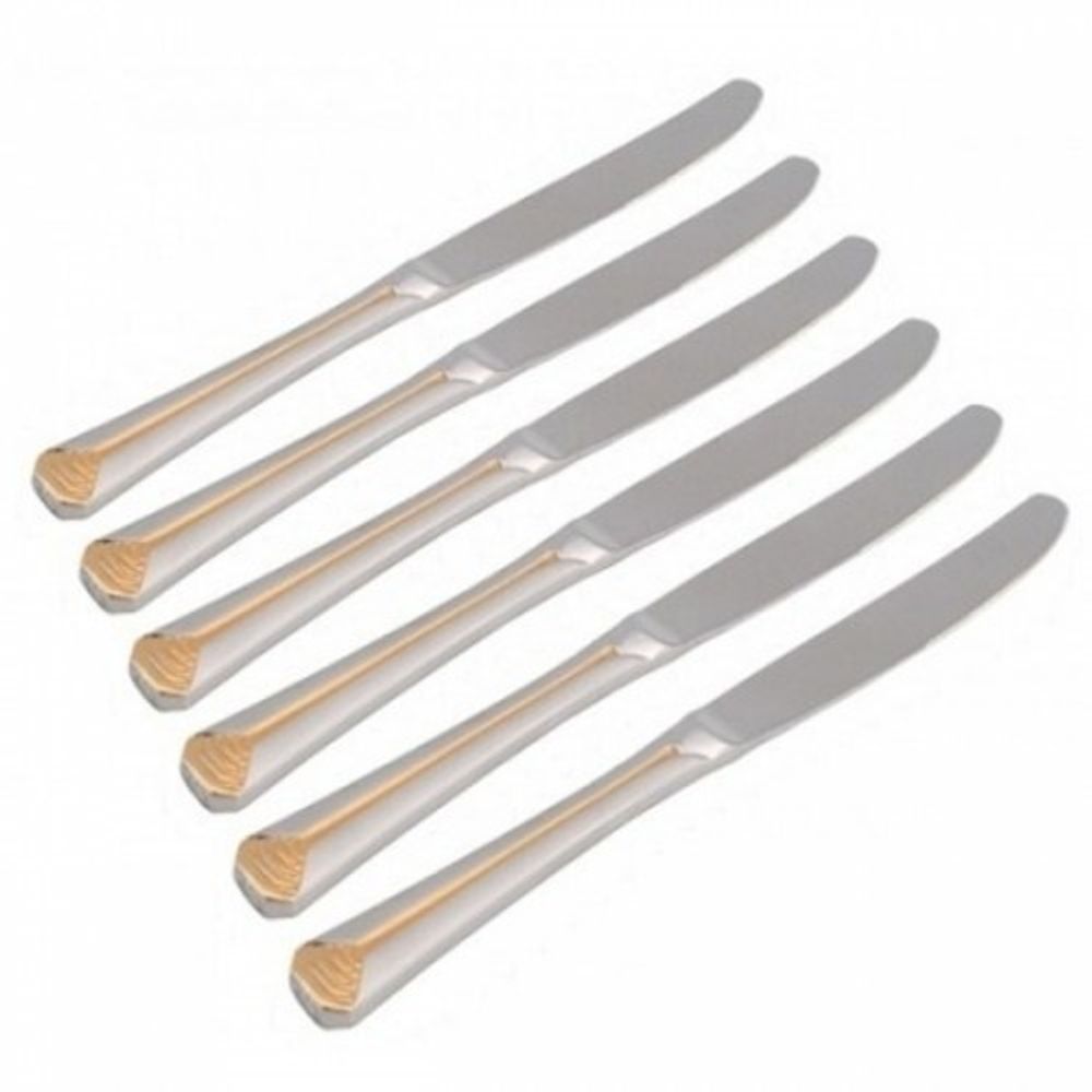 Комплект Abell Gold Gipfel 6256 — это сочетание практичности, надежности и элегантности. Набор столовых ножей выполнен из нержавеющей стали с применением позолоченного покрытия. В его производстве используются экологически чистые материалы. Это обеспечивает инструментам прочность, хорошую остроту и устойчивость к любым воздействиям. А золотистая отделка придает эстетики столовым приборам.