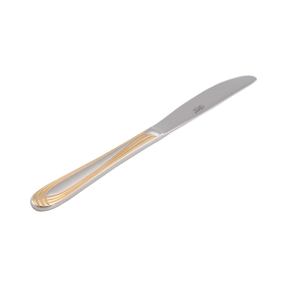 Набор столовых ножей Orion Gold Gipfel 6255. Комплект станет отличным дополнением для обеденной группы или приема гостей. Нержавеющая сталь обеспечивает прочность и долговечность, а позолоченная отделка придает элегантности общему дизайну. Приборы используют при приеме любых блюд, они украсят завтрак, обед или ужин в кругу друзей. Посуду можно свободно мыть в посудомоечных машинах.