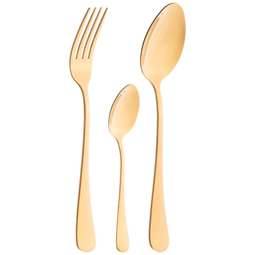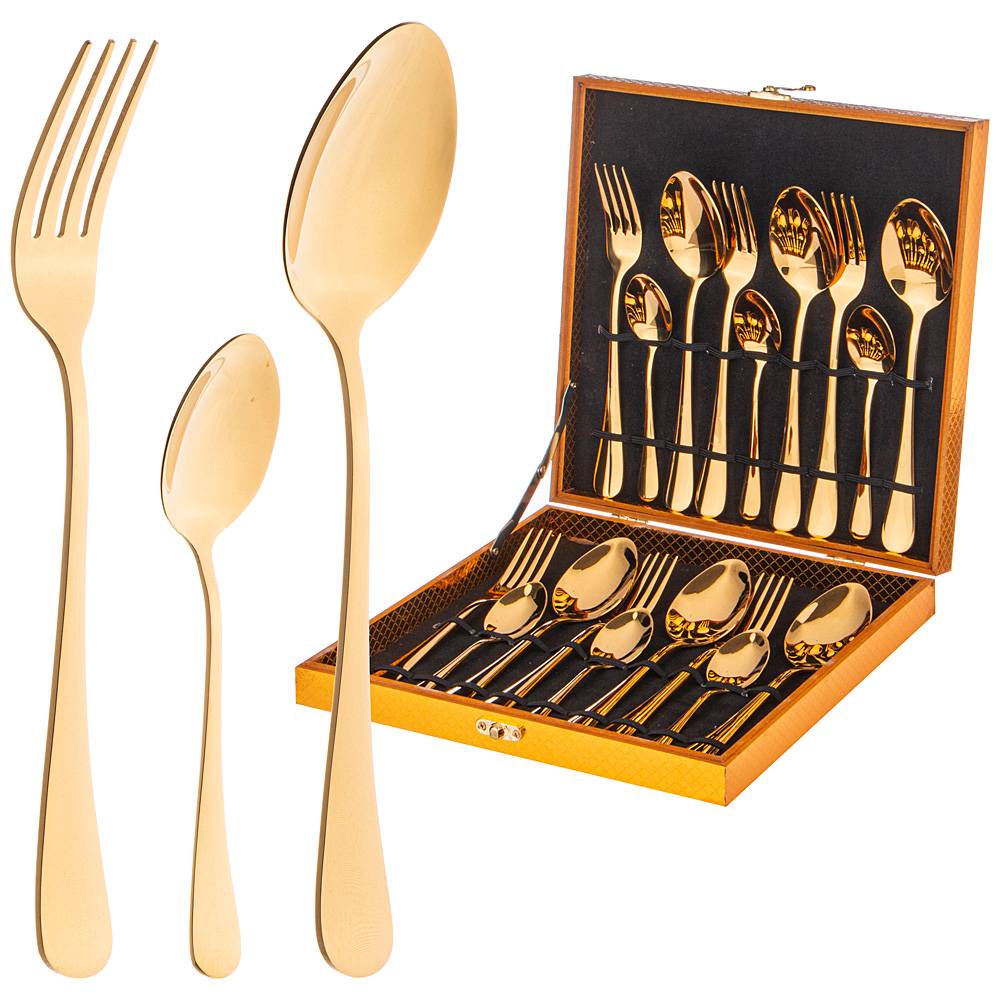 Набор состоиз из 18пр. - 6 столовых ложек, 6 столовых вилок, 6 чайных ложек. Все предметы набора выполнены из высококачественной нержавеющей стали.