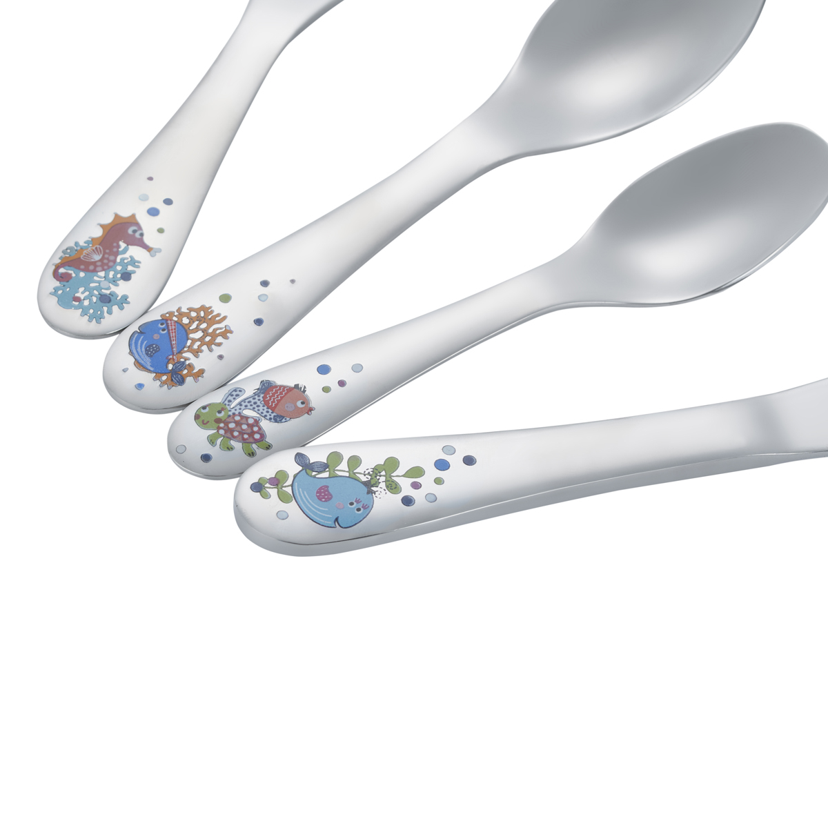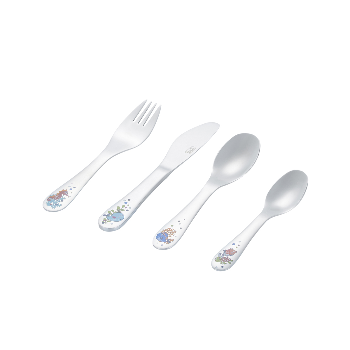 Набор столовых приборов Gipfel DEEP OCEAN 50691 из 4 предметов. В набор входят: нож 17 см, вилка 16 см, ложка 16 см, чайная ложка 13 см. Набор выполнен из нержавеющей стали 18/10.