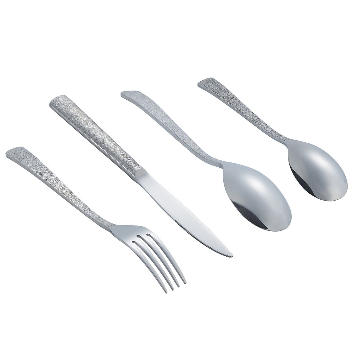 В состав наборов входят: столовый нож (6 шт.) – 23 см, столовая вилка (6 шт.) – 20 см, столовая ложка (6 шт.) – 20 см, чайная ложка (6 шт.) – 14 см.