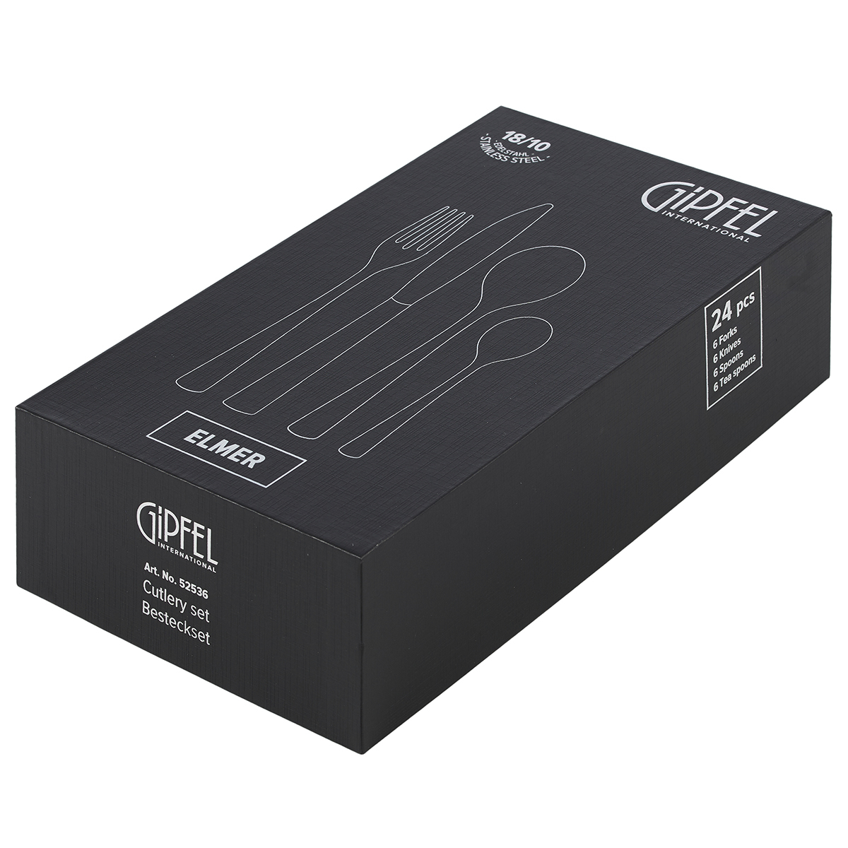 Набор столовых приборов Gipfel Elmer 52536 24 предмета на 6 персон в черной подарочной коробке.