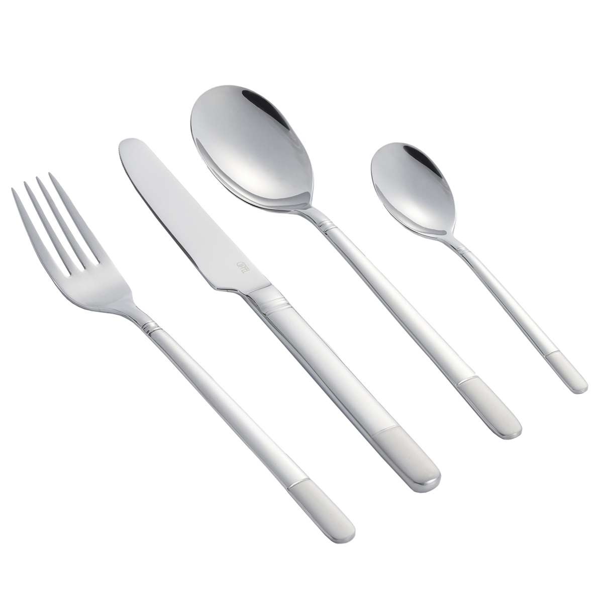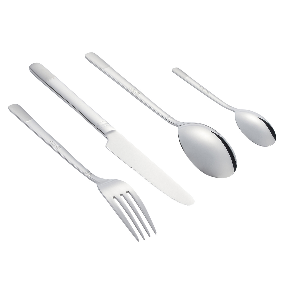 В состав наборов входят: столовый нож (6 шт.) – 23 см, столовая вилка (6 шт.) – 21 см, столовая ложка (6 шт.) – 21 см, чайная ложка (6 шт.) – 14 см.