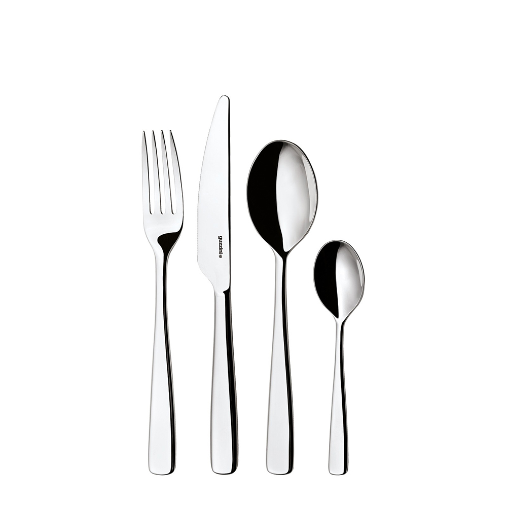 Набор столовых приборов Grace рассчитан на шесть персон. Стандартный сет на одного человека включает в себя нож, вилку, столовую ложку и чайную ложку. Простые, но изящные формы приборов идеально сочетаются с другими предметами из коллекции Grace. Кроме того, классический дизайн набора делает его универсальным дополнением любого кухонного интерьера. Идеально подойдет для использования на каждый день.