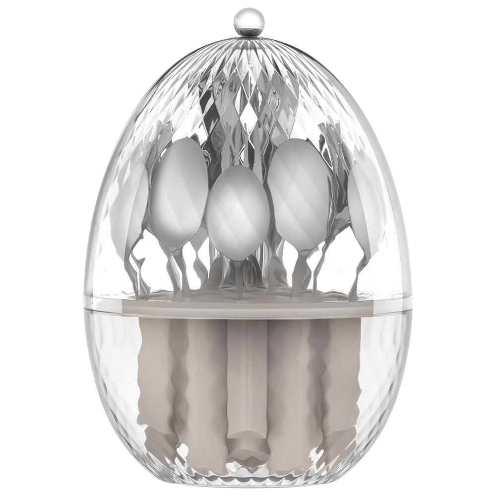 Премиальный набор столовых приборов на 6 персон. Высокое качество обеспечит длительный срок службы и надежность в эксплуатации. Безупречный внешний вид, эргономичность, удобная форма столовых приборов подойдет для торжественной сервировки. Удобная вращающаяся подставка в форме яйца позволит хранить все предметы компактно, легко и доступно. Сделайте сервировку по-настоящему выдающейся! Набор столовых предметов включает в себя 24 предмета на 6 персон: - 6 столовых ложек - 6 столовых вилок - 6 чайных ложек - 6 столовых ножей Характеристики: - Вращающаяся подставка - Компактное хранение столовых приборов - Отличный подарок