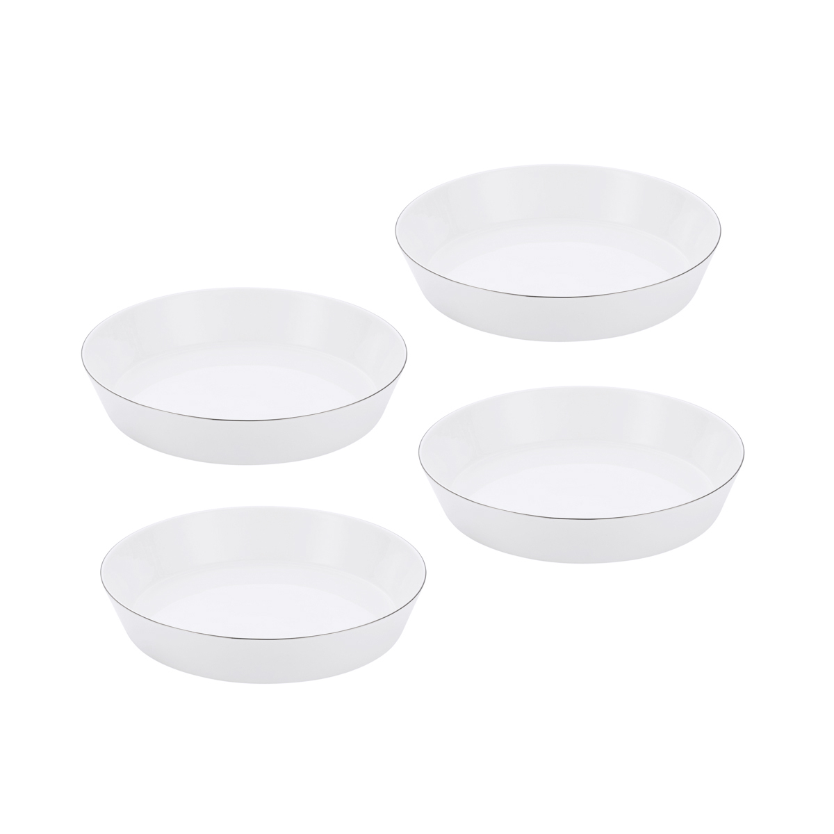 Набор столовый Gipfel NOBILE 42190. В наборе 4 суповых тарелки диаметром 21 см. Тарелки сделаны из костяного фарфора белого цвета с серебристой каймой. Сочетаются на сервированном столе с другой посудой коллекции NOBILE.