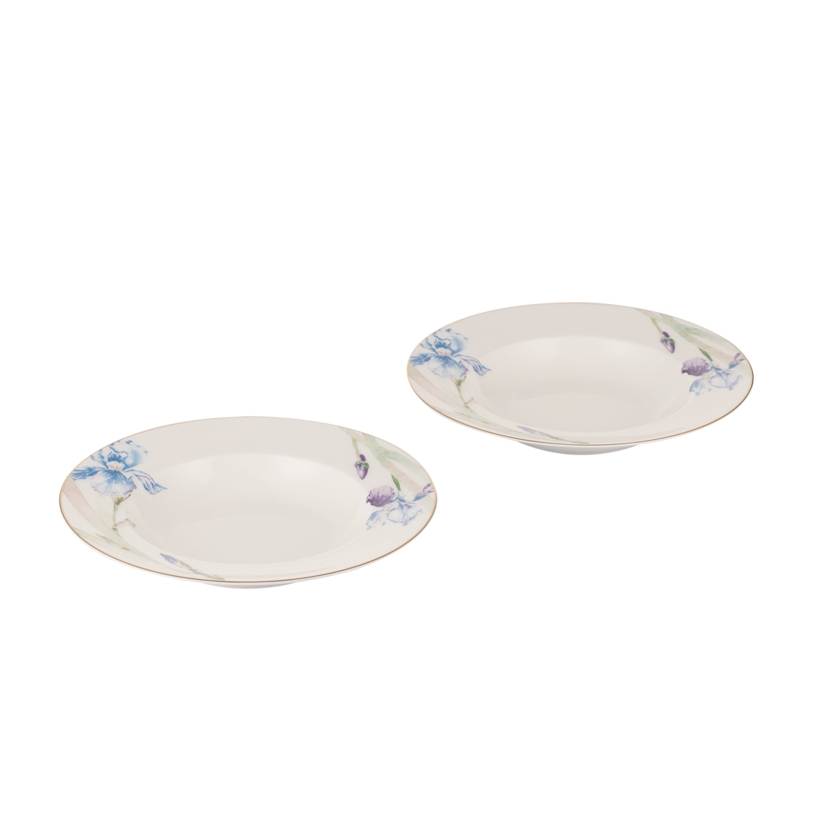 Набор тарелок суповых GIPFEL IRIDI 40976. В наборе 2 глубокие тарелки диаметром 23,5 см. Тарелки выполнены из премиального фарфора белого цвета с изображением сиренево-голубых ирисов. Тарелки прекрасно сочетаются с другими предметами сервировки коллекции IRIDI.