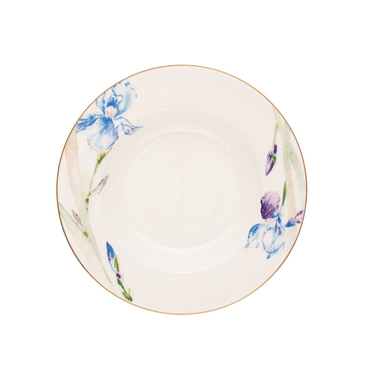 Набор тарелок суповых Gipfel IRIDI 40976. В наборе 2 глубокие тарелки диаметром 23,5 см. Тарелки выполнены из премиального фарфора белого цвета с изображением сиренево-голубых ирисов. Тарелки прекрасно сочетаются с другими предметами сервировки коллекции IRIDI.