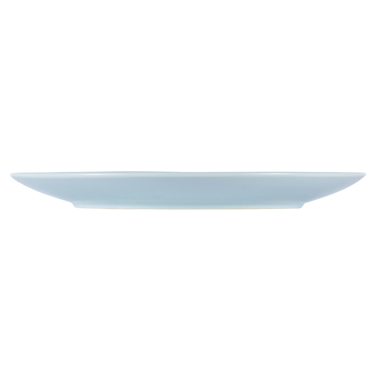 Тарелка выполнена в нежном молочно-голубом цвете.