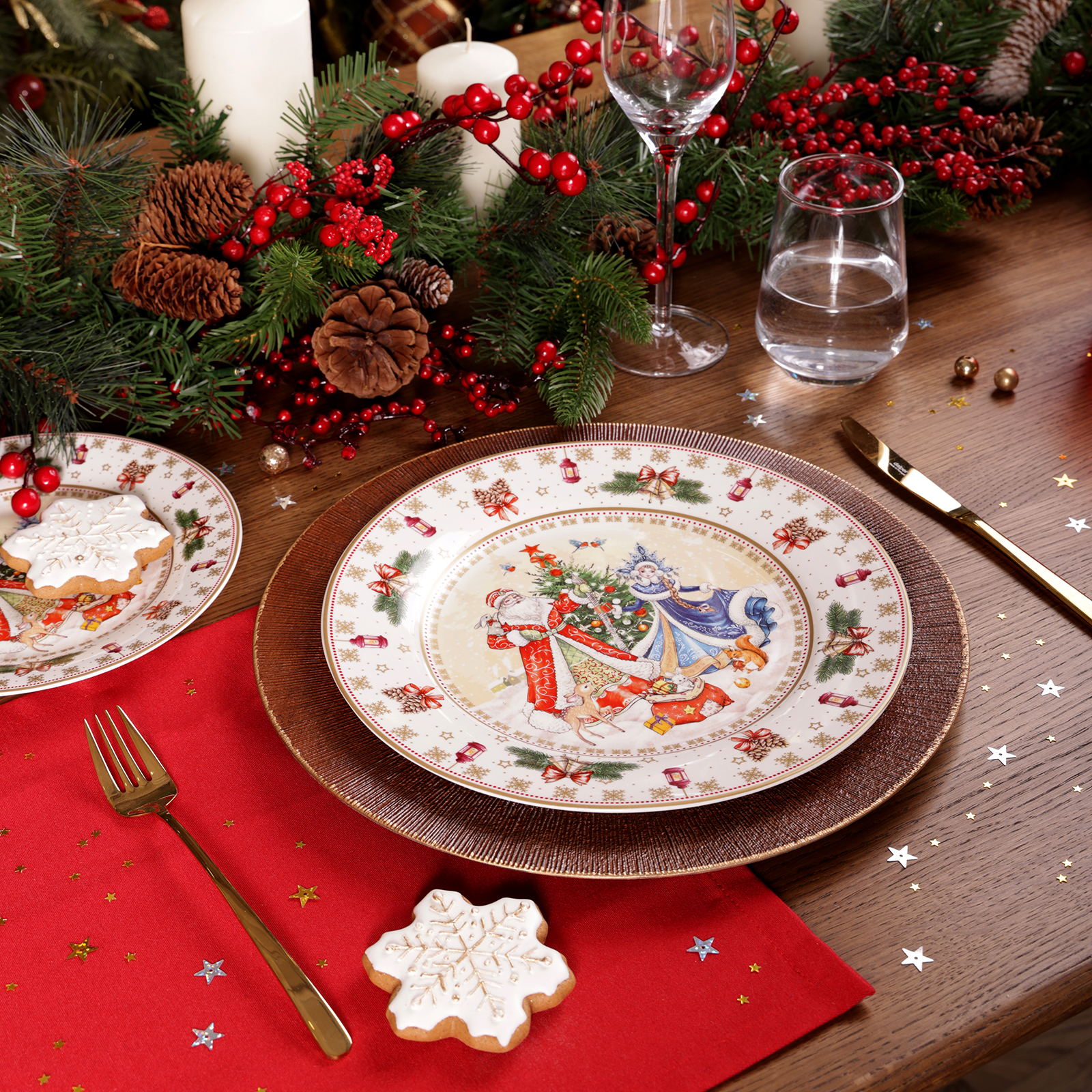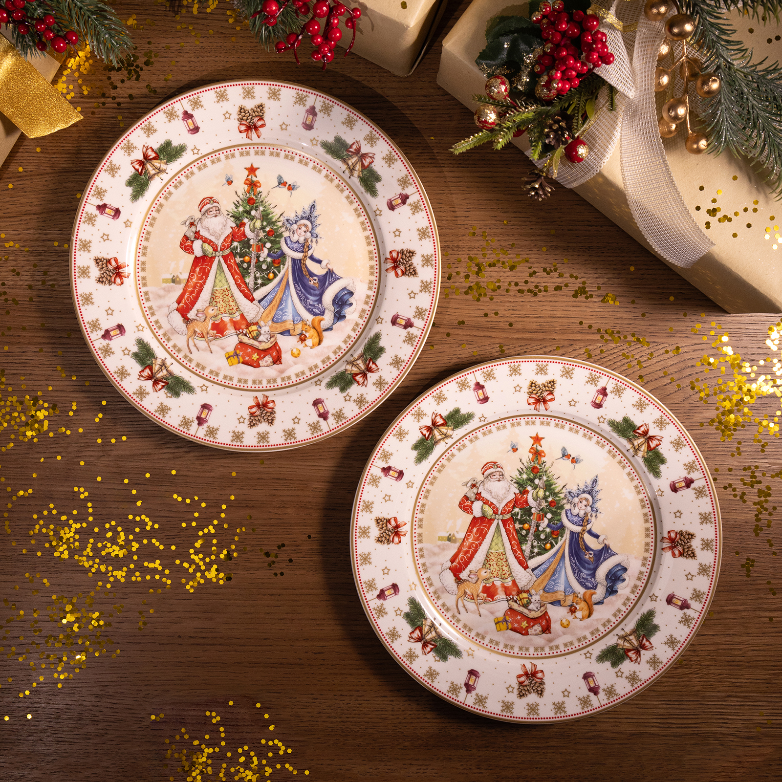 НАБОР ТАРЕЛОК ОБЕДЕННЫХ LEFARD "ДЕД МОРОЗ И СНЕГУРОЧКА" 2 ШТ. 27 СМ (КОР=9НАБ.)