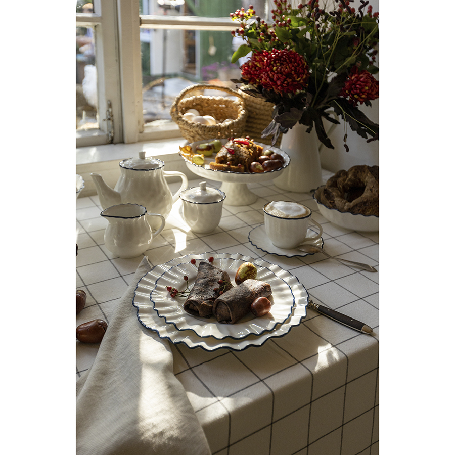 Тарелки из коллекции Santorini от бренда Liberty Jones воплощают в себе элегантность посуды из фарфора, привлекая необычным дизайном с контрастными акцентами.