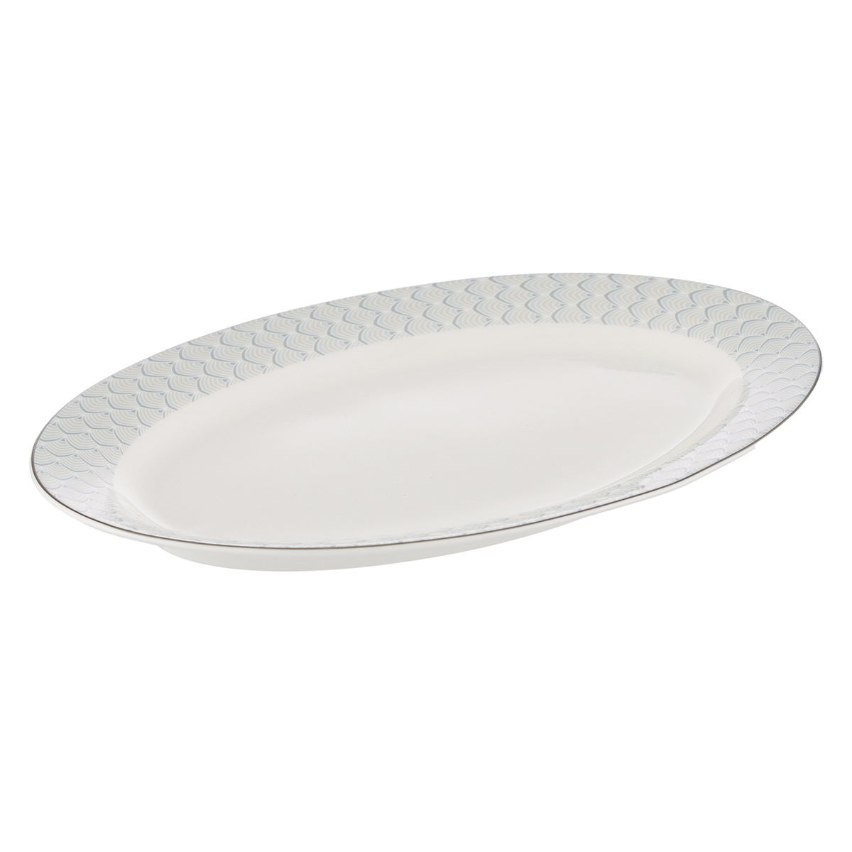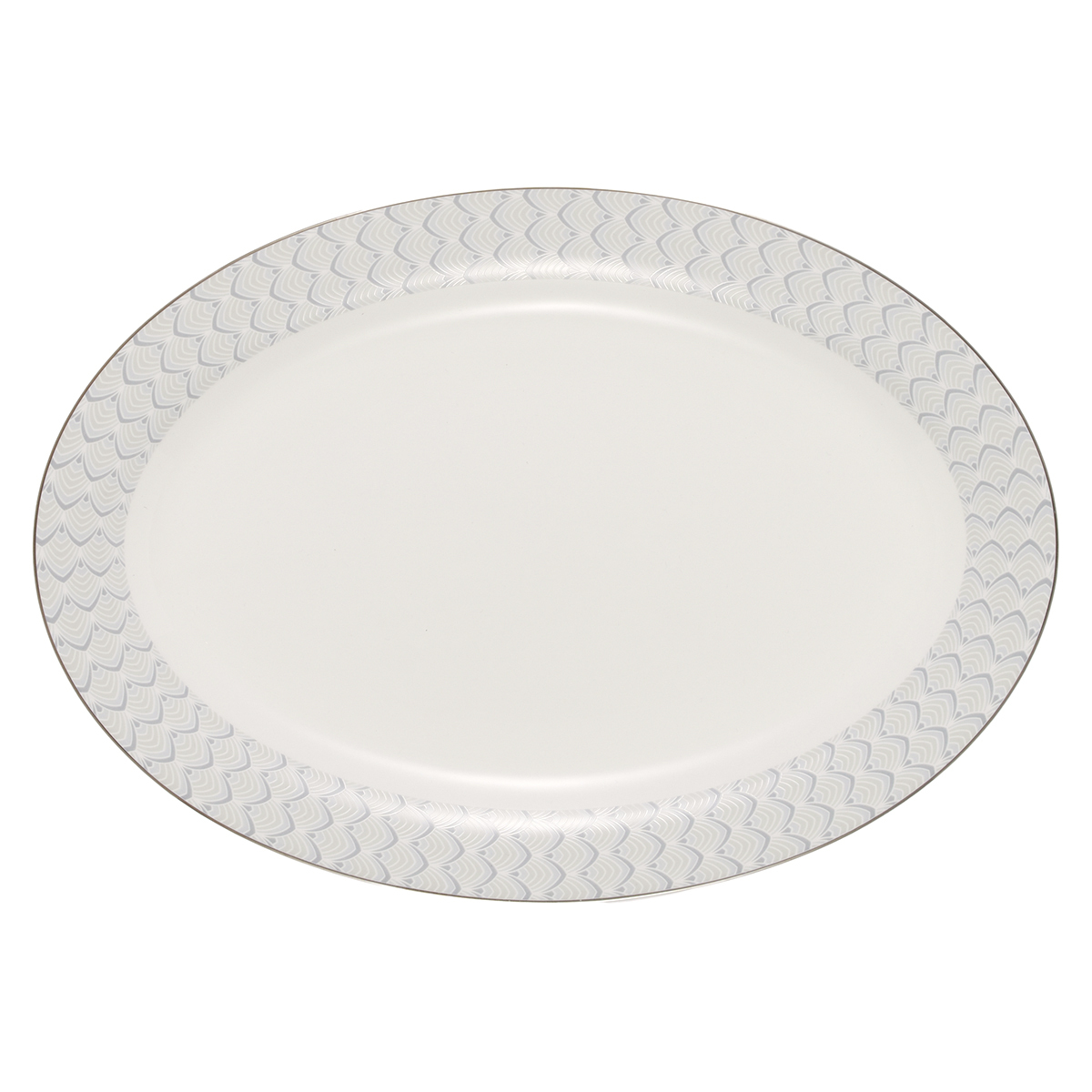 Набор Gipfel Caroline выполнен в классическом стиле: белоснежную поверхность овального блюда украшает по бортику изящный рельефный геометрический орнамент в молочно-серых тонах. Серебристый кант по краю дополняет композицию. Утонченные формы, элегантный декор и глянцевая поверхность делают посуду коллекции Caroline великолепным украшением стола.