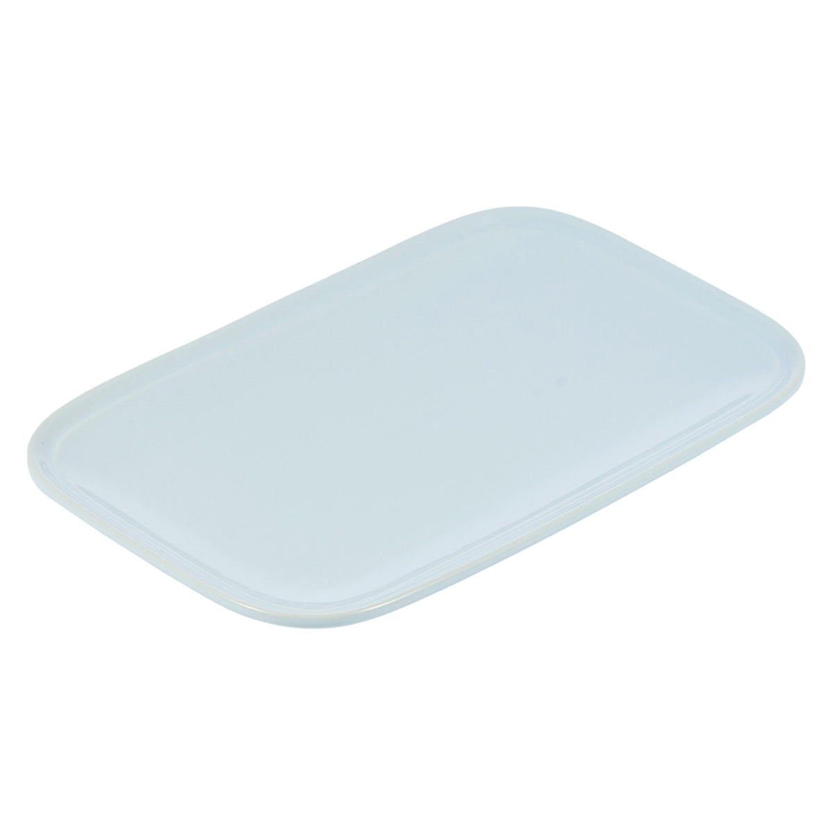 Тарелка выполнена в нежном молочно-голубом цвете.