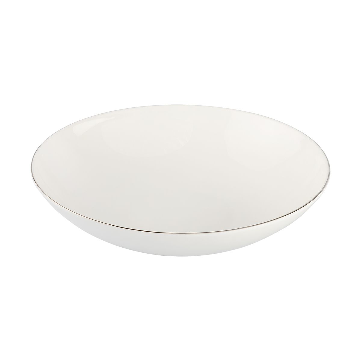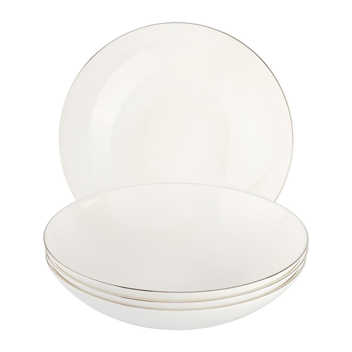 Набор тарелок суповых Gipfel PLATINUM 51536. В наборе 4 тарелки диаметром 22 см. Тарелки изготовлены из костяного фарфора с ободком серебристого цвета по краю. При сервировке сочетаются с другой посудой коллекции PLATINUM.