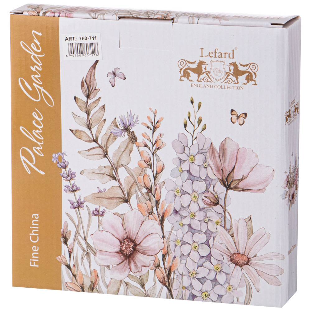 TM Lefard «Дворцовый парк» - это эксклюзивная коллекция посуды и предметов сервировки, выполненная на тонкостенном фарфоре. Дизайн создан профессиональными художниками. Стильная форма, вместительный объем, уникальная цветочная деколь, золотая окантовка - все это делает коллекцию неотразимой и очень привлекательной. Это прекрасный подарок в красочной индивидуальной упаковке. Подходит для ежедневного использования и для праздничной сервировки стола. Нельзя использовать в микроволновой печи, не рекомендуется мыть в посудомоечной машине во избежание повреждения золотой отводки. Посуда прошла сертификацию. Безопасна для контакта с пищевыми продуктами.