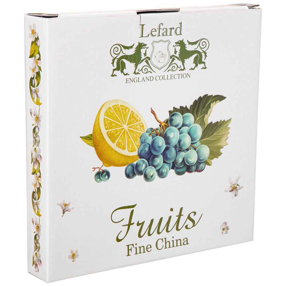 ТМ Lefard коллекция "Фрукты" - фруктовое ассорти на посуде и предметах сервировки сделает любую кухню уютной, а семейное чаепитие - душевным. Изделия из тонкостенного, высококачественного и костяного фарфора. Удобная форма, красочный дизайн, яркая упаковка. Изделия подходят для ежедневного использования и праздничной сервировки стола. Отличный подарок. Посуда прошла сертификацию. Безопасна для контакта с пищевыми продуктами. Можно смело использовать в микроволновой печи, мыть в посудомоечной машине, ставить в холодильник.