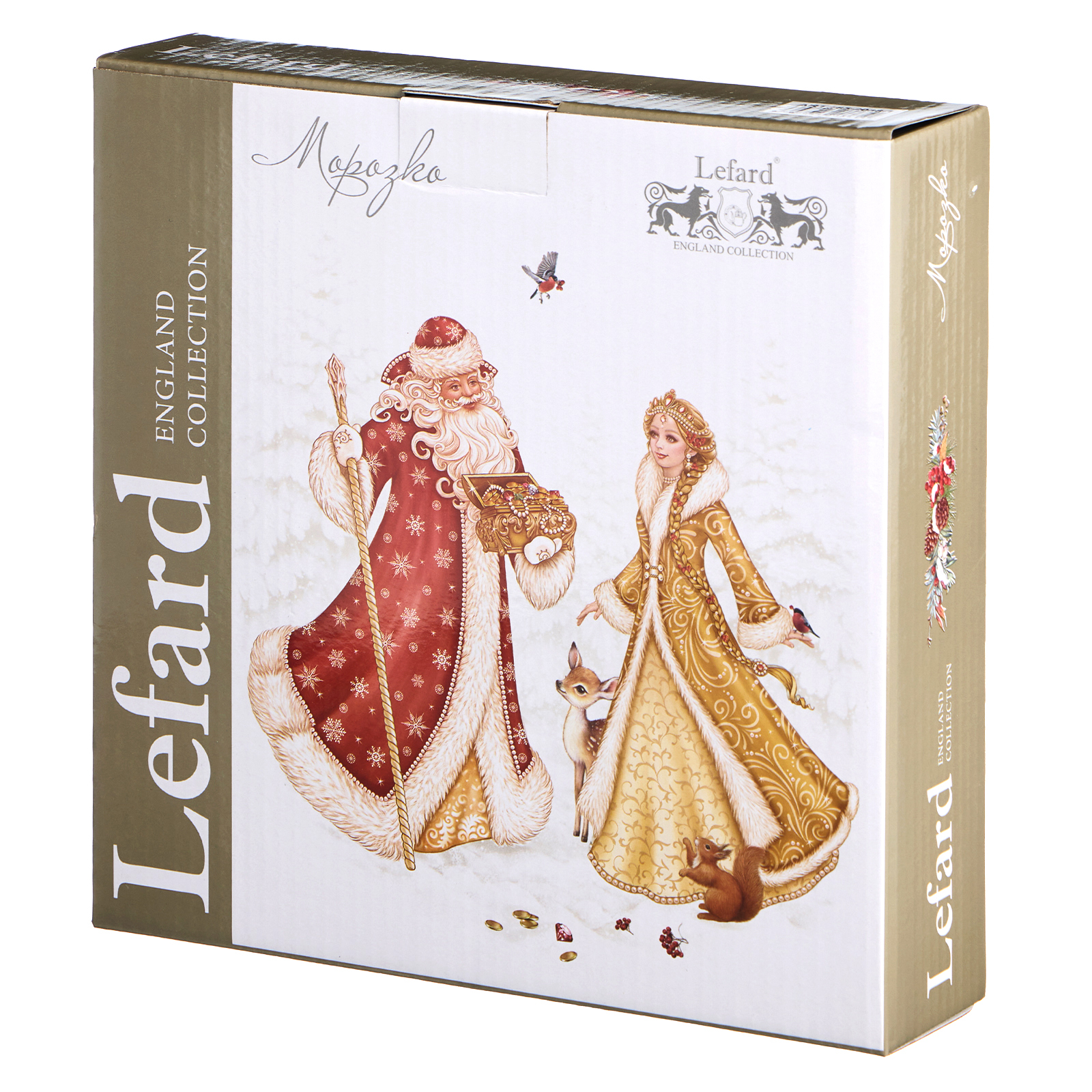 ТМ LEFARD эксклюзивная коллекция "Морозко" создана по мотивам любимой одноименной новогодней сказки, на которой выросли несколько поколений маленьких зрителей. Всем близка история доброй и красивой девушки Настеньки, которую злая мачеха отправила в лес на верную погибель. Детальные композиции, тонкие линии, высокое качество печати на тонкостенном белоснежном фарфоре превращает изделия в ожившие сюжеты. Разнообразие посуды и предметов сервировки добавят волшебства и красок в Ваш дом и порадует всех тех, кто сохранил в душе детскую радость и предвкушение чуда в самый ожидаемый праздник в году. Оригинальная упаковка. Прекрасный подарок. Вся продукция сертифицирована и безопасна для контакта с пищевыми продуктами. Можно использовать в СВЧ, не рекомендуется мыть в посудомоечных машинах во избежание повреждения золотой отводки (деколи) на изделиях.
