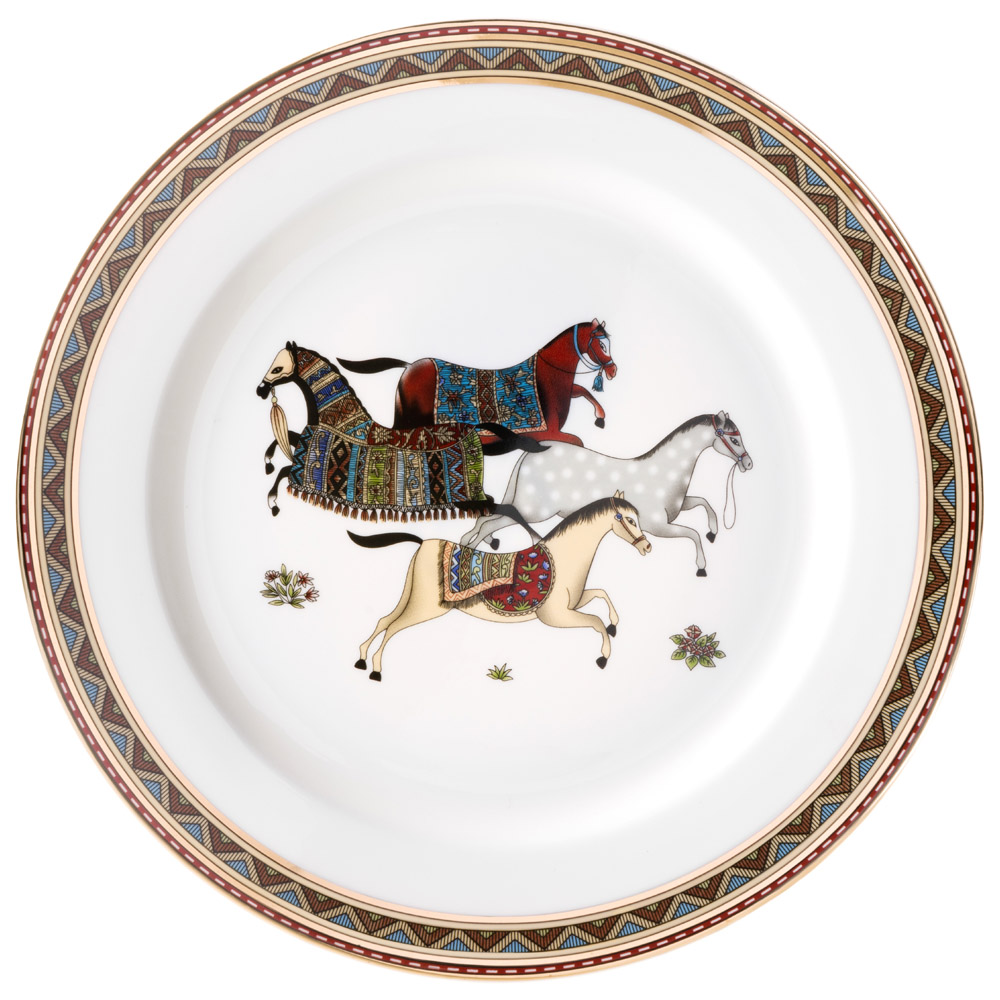 ТМ Lefard коллекция Passage мужественная и стильная. Движения лошадей эластичные, элегантные с активным импульсом. Каждая диагональная пара ног поднимается и ставится в очень точном ритме и с подвисанием. Шея лошади приподнята и округлена, затылок находится в высшей точке, голова опущена почти вертикально. Этот ритм завораживает. Посуда для сервировки стола из тонкостенного упрочненного фарфора неповторима. Прямые формы. Декор с богатым орнаментом и золотой окантовкой. Посуда прошла сертификацию. Безопасна для контакта с пищевыми продуктами. Отличный подарок. Не использовать в микроволновой печи, не рекомендуется мыть в посудомоечной машине.