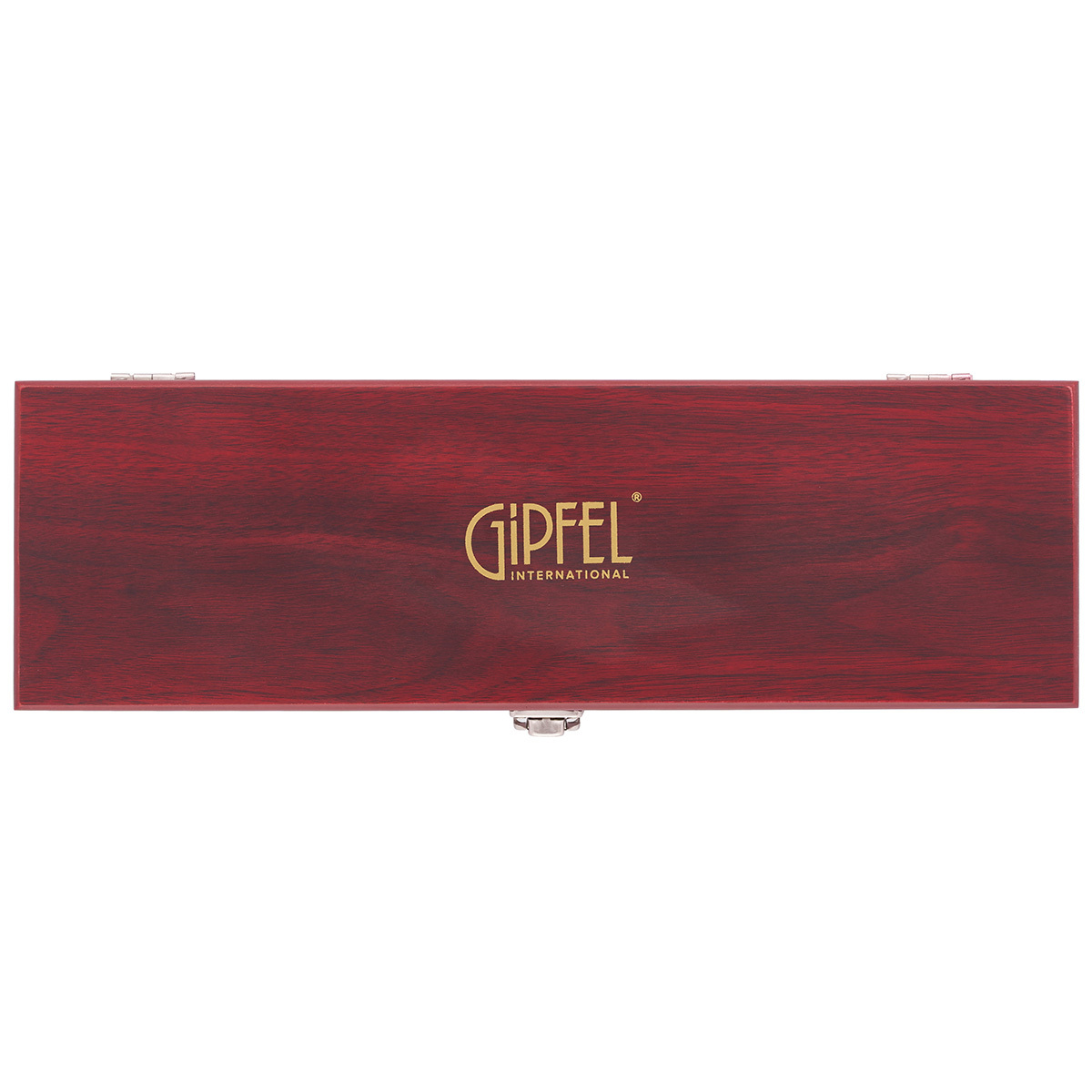 Набор винных аксессуаров Gipfel 9627. Размер 36х11,5х11 см. В комплекте 4 аксессуара в деревянном футляре: аэратор с функцией воронки, многофункциональная открывалка, специальный термометр и нож для срезания фольги с горлышка бутылки. Данные приспособления позволяют быстро открыть вино и сделать его хранение более эффективным. В деревянный футляр помещается бутылка вина.