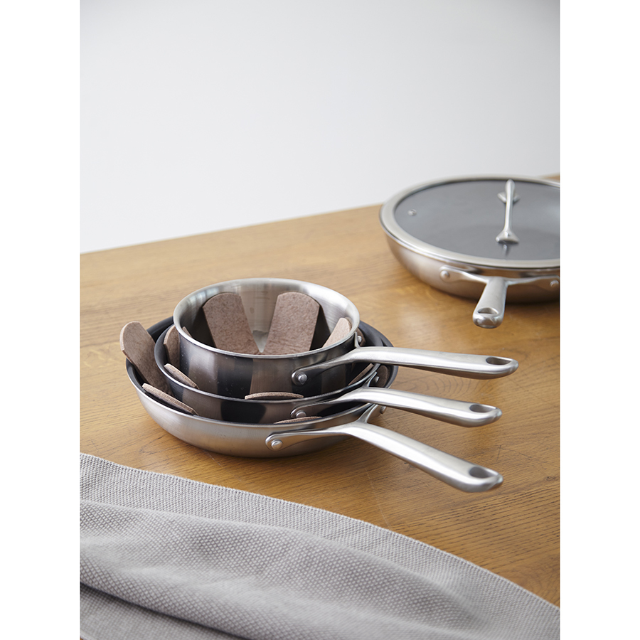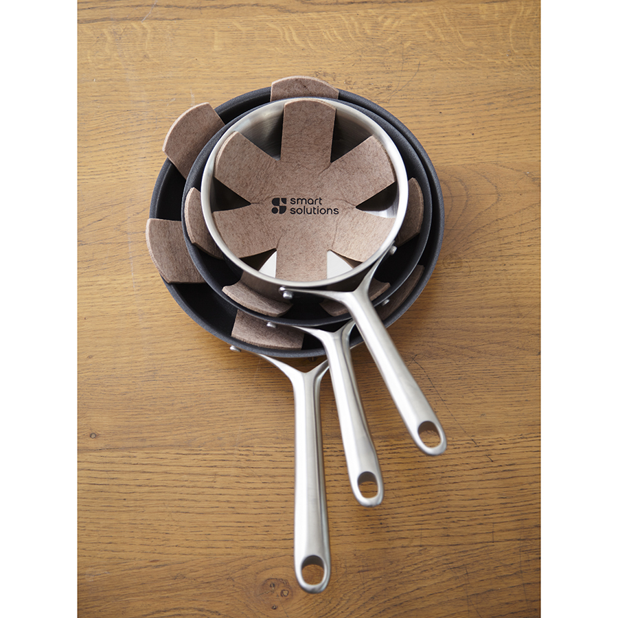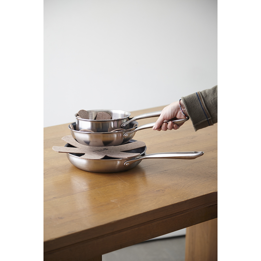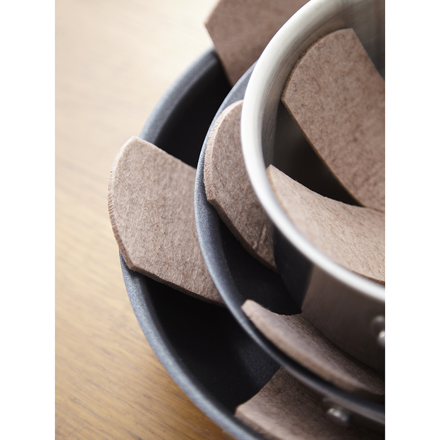 Вкладыши Panrest обеспечат удобное, компактное и безопасное хранение вашей посуды. Просто разместите их между сковородками, формами для выпечки или кастрюлями, чтобы уменьшить площадь соприкосновения и защитить их поверхности от сколов и царапин.