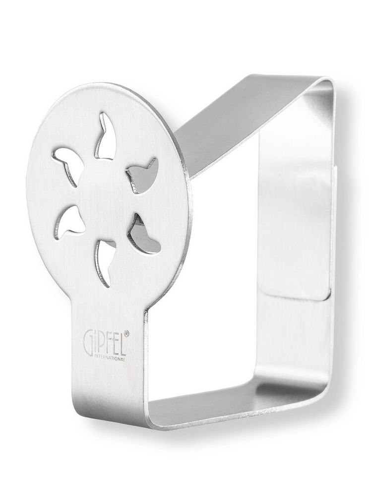Набор зажимов для скатертей Gipfel 6068. В наборе 4 зажима. Размер 5 см. Они прочно фиксируют скатерть по периметру стола. Сделаны из нержавеющей стали. На верхней стороне резной рисунок в виде солнышка и фирменный логотип GIPFEL.
