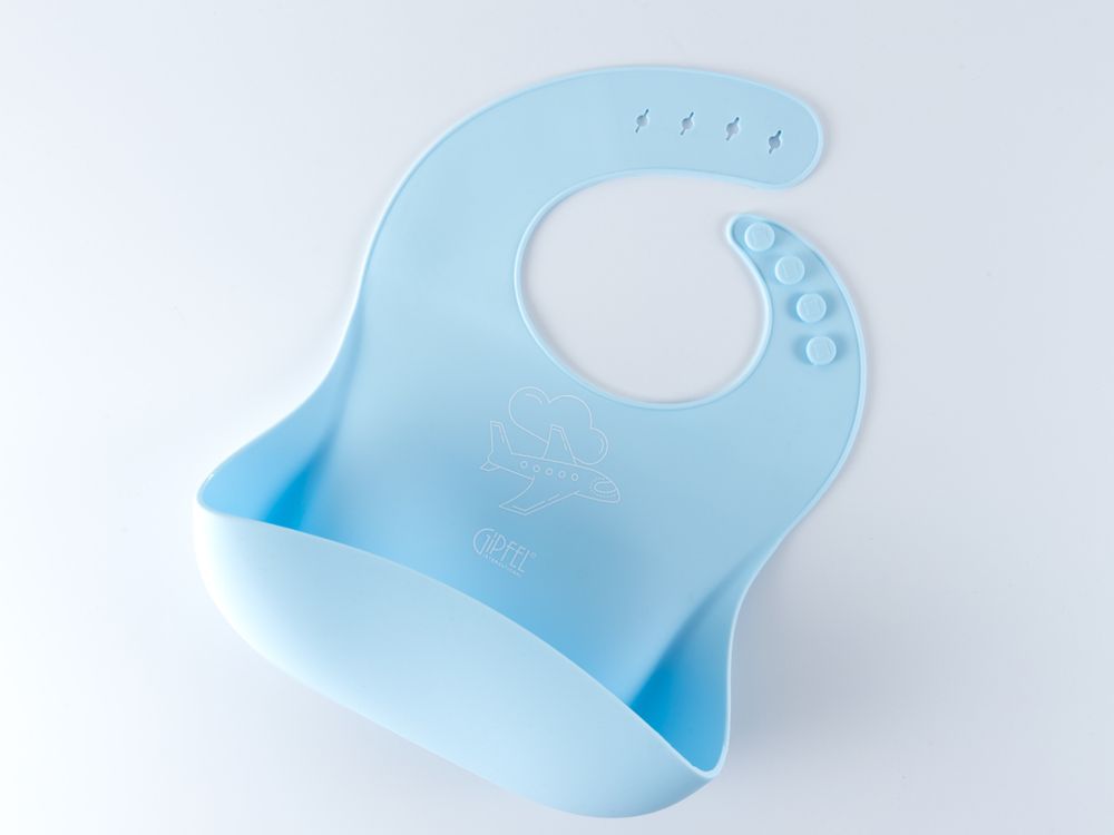 Нагрудник детский Gipfel 0342. Размер 27х21 см. Нагрудник сделан из силикона синего цвета.