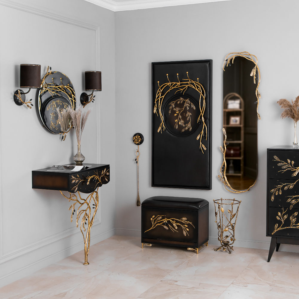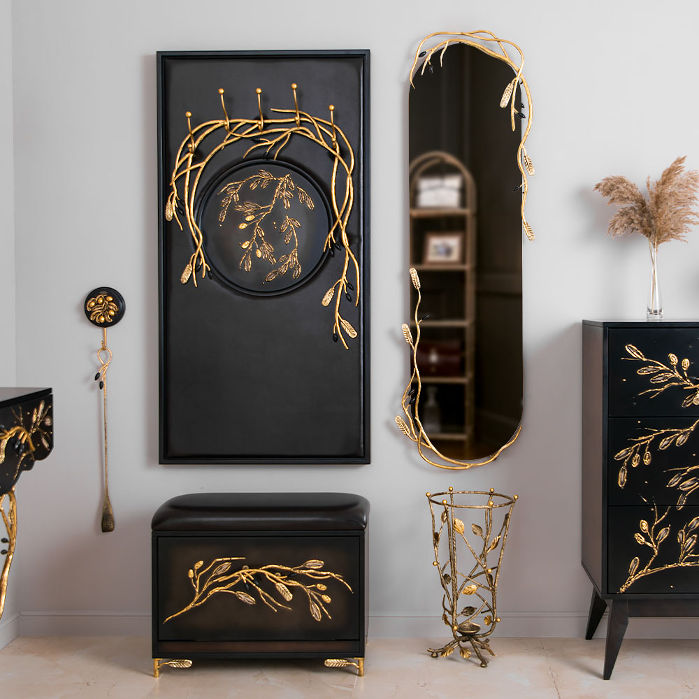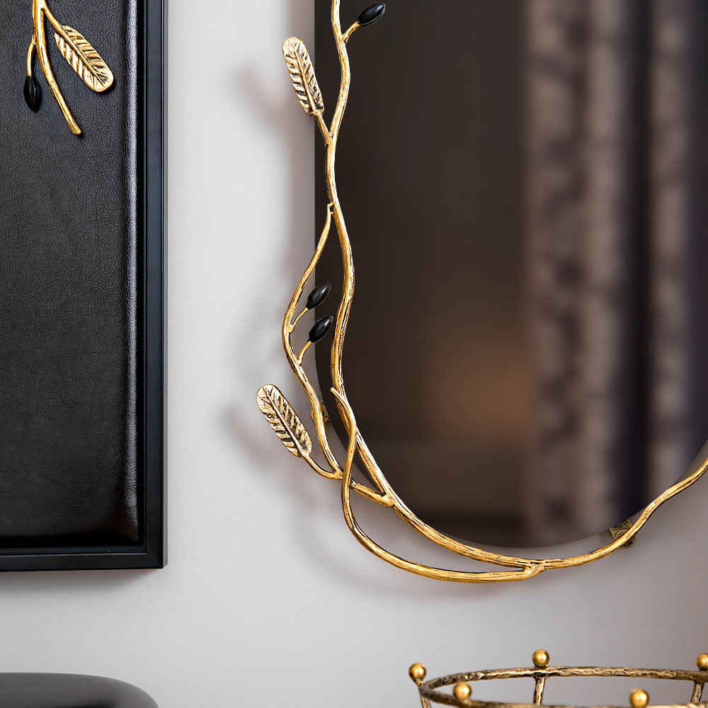 Увеличить пространство гардеробной, гостиной или холла легко вместе с интерьерными зеркалами BOGACHO.Зеркальное полотно закреплено на металлической раме из легированной стали. Декоративные элементы отлиты из натурального коелгинского мрамора, отшлифованы и патинированы вручную. Размер зеркального полотна: 141см х 38см.Интерьерное зеркало BOGACHO Oliva Branch Бронзового цвета отлично подойдёт для пространства в эко-стиле, стиле Прованс или Арт-деко.Внесите завершающий штрих в свой интерьер вместе с эксклюзивными изделиями BOGACHO.