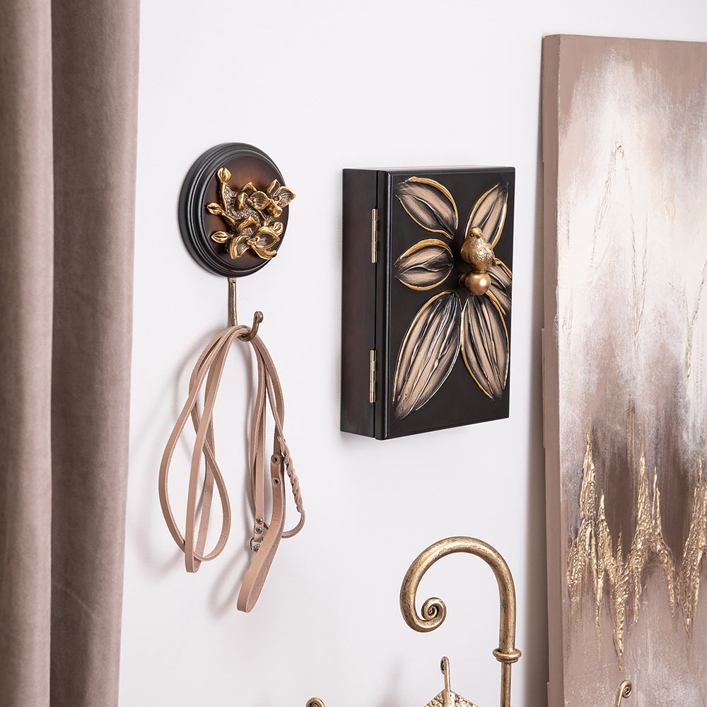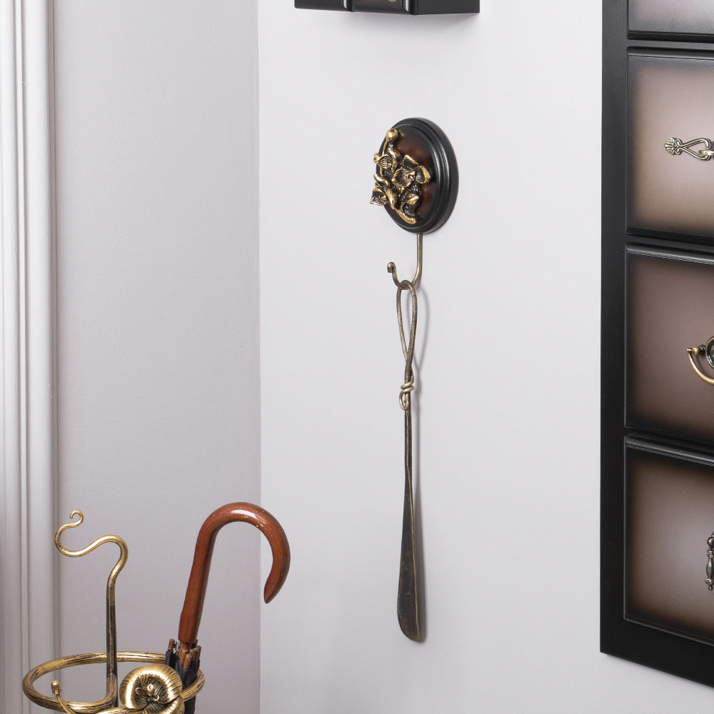 Наполните своё пространство классическим величием с добавлением современного стиля. Настенный крючок BOGACHO станет незаменимым помощником в индивидуализации Вашего пространства. Эклектичное основание выполнено из МДФ, декоративные элементы отлиты из коелгинского мрамора, отшлифованы и патинированы вручную. Крючок выкован из легированной стали. Украсить свой интерьер вместе с эксклюзивными изделиями BOGACHO просто. Изделие приходит в собранном виде и не требует последующей сборки.