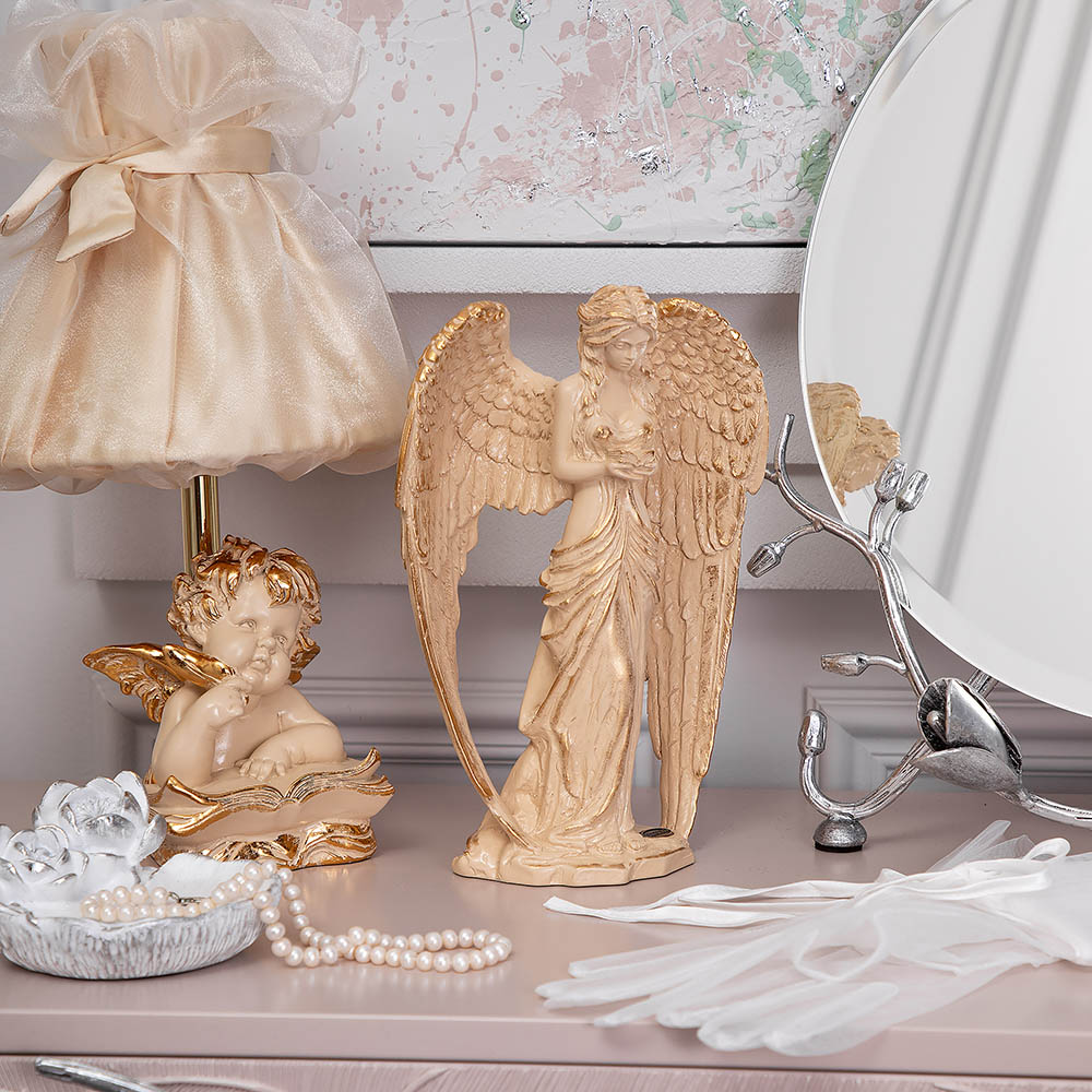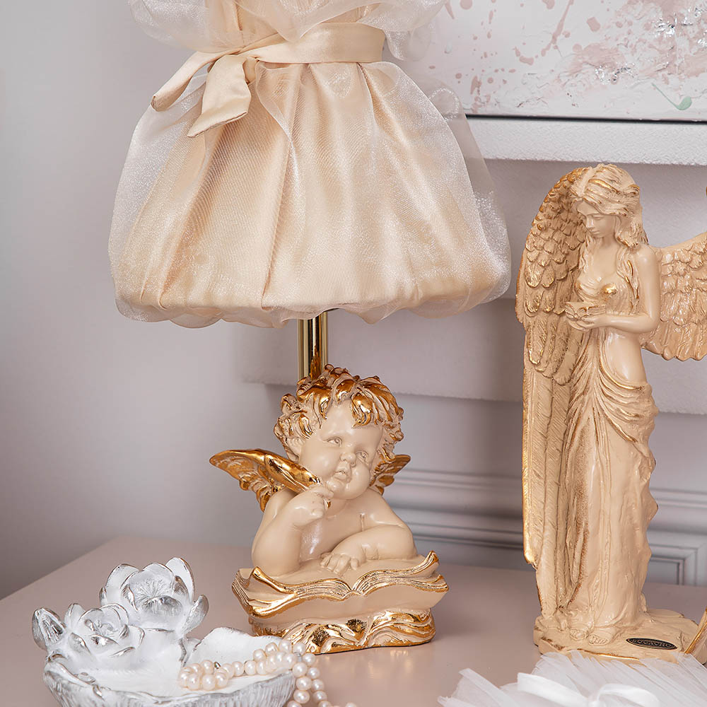 Великолепный подарокСтатуэтки ангелов всегда становились элементом интерьеров женских спален, будуаров и туалетных столиков. Светильник «Ангел поэт» создает в гостиной или любой другой комнате ощущение домашнего уюта и ласкового тепла.