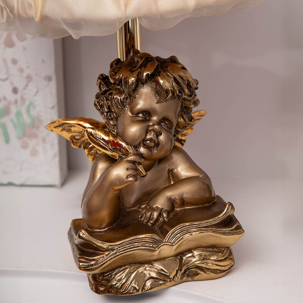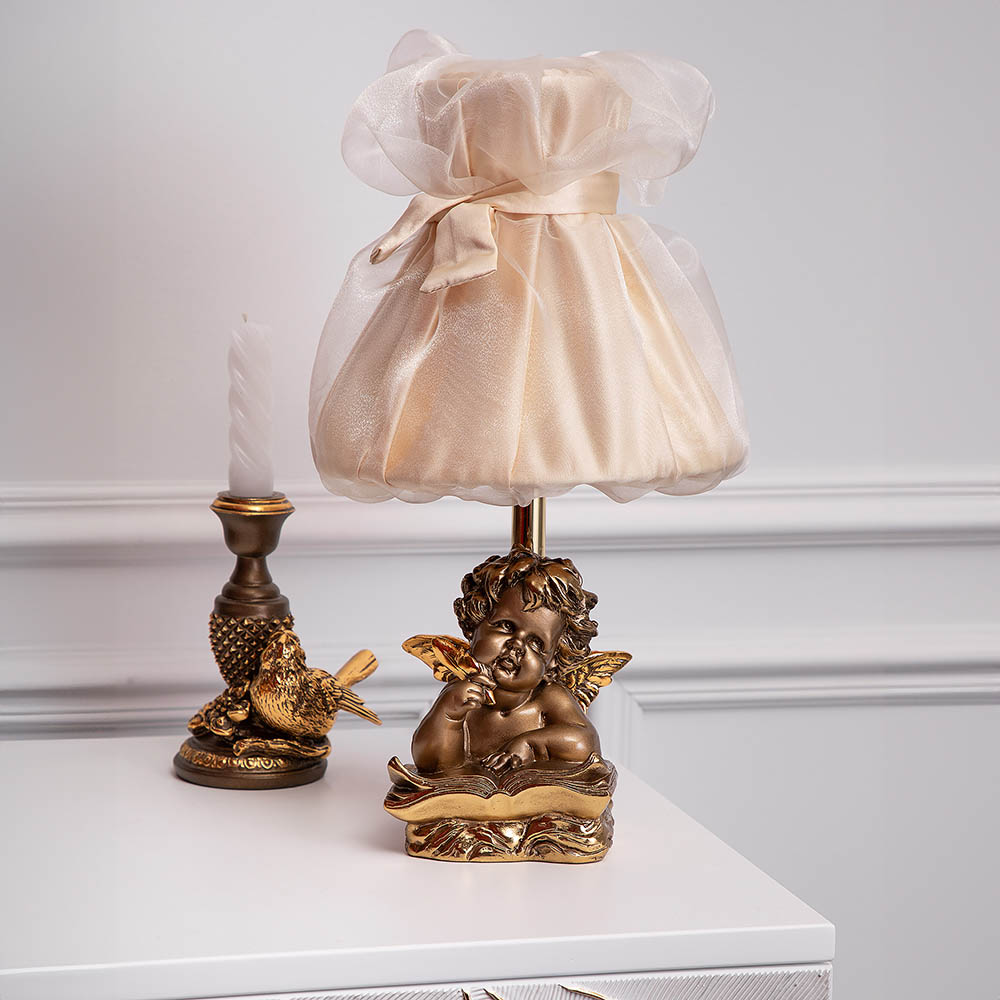 Настольная лампа Ангел Поэт Бронза с абажуром Мадлен Бежевый