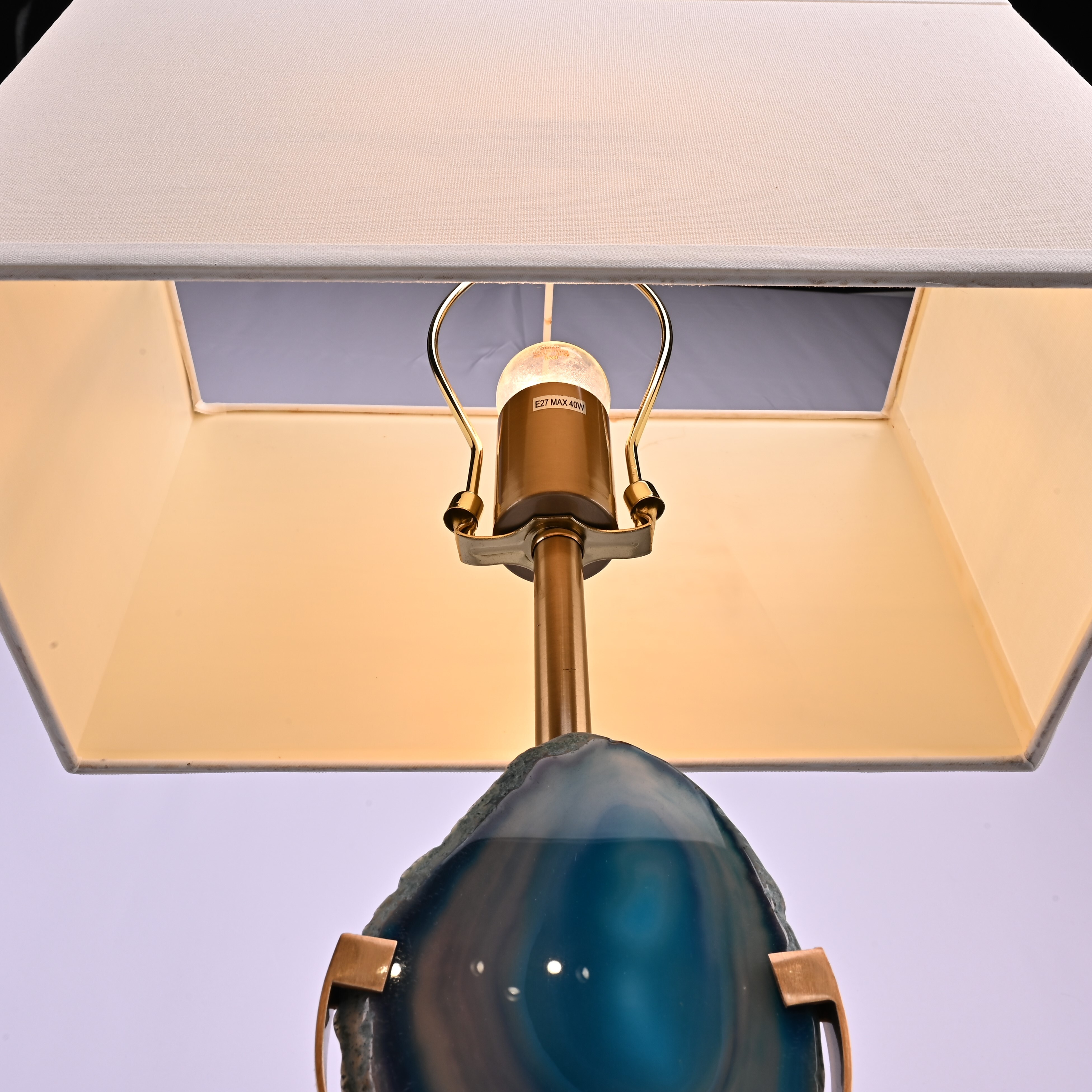 Превратите свою обыденную комнату в уютное убежище с настольной лампой Blue Agate Table Lamp. Эта элегантная лампа сочетает в себе изысканный дизайн с красивым синим агатом, который придает ей особый шарм. Создайте уютную атмосферу и добавьте немного роскоши в свой интерьер с помощью этой прекрасной настольной лампы. Пусть ваш дом станет местом, где царит атмосфера уюта и стиля благодаря Blue Agate Table Lamp.