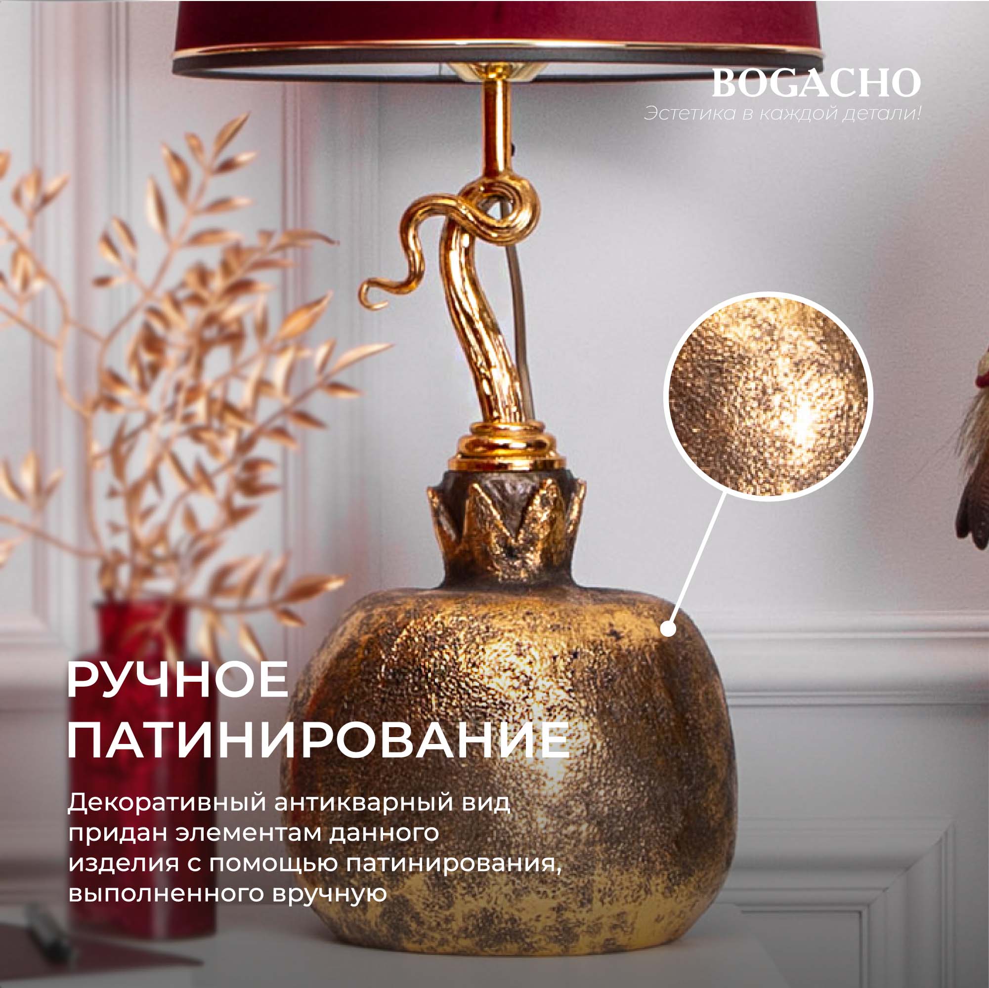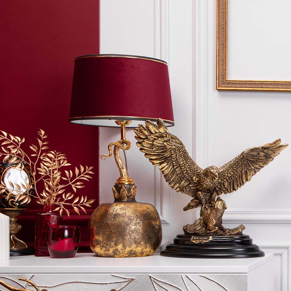 Может ли настольная лампа быть полноценным декором для гостиной и спальни? Да! Если это светильник настольный российской фабрики BOGACHO. Сможете ли вы назвать это произведение искусства обычным светильником? Едва ли! Благодаря выразительному дизайну светильник настольный декоративный впишется в любой интерьер и сделает уютным даже самый темный уголок вашего дома. Интерьерная настольная лампа, призвана наполнить интерьер мягкостью света, комфорта и создать гармонию и атмосферу уюта. Этот светильник с абажуром позволяет расширить возможность дизайнерского решения дома или комнаты. Основание светильника выполнено из стеклокомпозита, отшлифовано и патинировано вручную. Абажур с нижним способом крепления имеет металлический каркас с применением технологии порошковой покраски и креплением под цоколь Е27. Подключается в розетку питания 220в (напряжение) через провод.В зависимости от насыщенности и световой температуры лампочки, вы сможете задавать тон освещения под любое настроение, от рабочего белого дневного света до более теплого тона для отдыха, релакса, расслабления и романтики. Светильник очень практичен в использовании - легко собирается и устанавливается в лучших традициях ikea.Товар произведен в России и соответствует всем стандартам безопасности. При свете ночника удобно читать. Благодаря абажуру свет рассеивается равномерно по комнате, не режет глаза и не мешает никому засыпать если в комнате вы не одни. Прикроватная лампа отлично подойдет на тумбочку, в спальню или на туалетный столик. Украсит интерьер: разместите ночной светильник на комоде. Удачно будет смотрется на консольном столике в прихожей. Можно ипользовать светильник ночник для гостиниц. Он украсит интерьер и станет незаменимой деталью для полной комплектации как квартир, так и номеров отелей. Для защиты стола от царапин, мы установили накладки из мягкой ткани, препятствующие истиранию поверхности. Светильник завернут в воздушно - пузырчатую пленку, ложемент и надежно упакован в коробку из гофрированного картона, поэтому данный аксессуар для интерьера приедет к вам не поврежденным. Любите, чтобы интерьер был в едином стиле? Присмотритесь к продукции BOGACHO, которая будет гармонично сочетаться друг с другом. Лампа в комплект не входит.