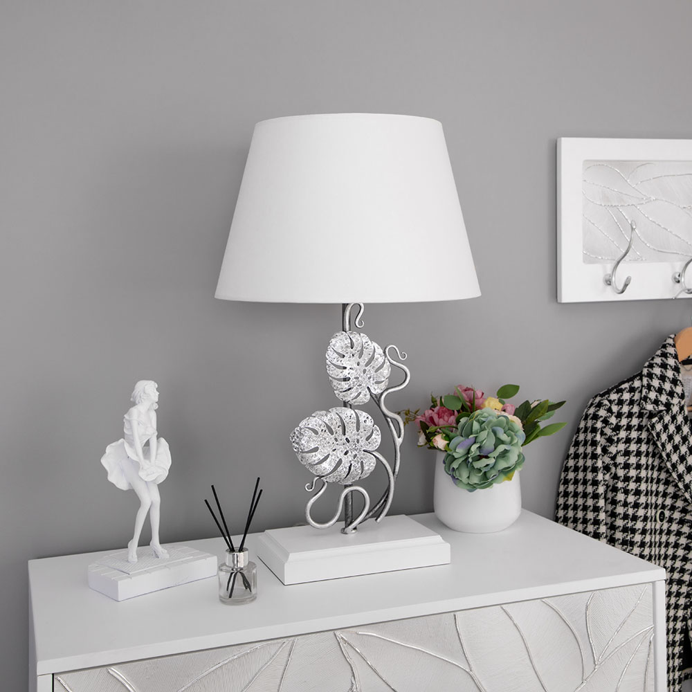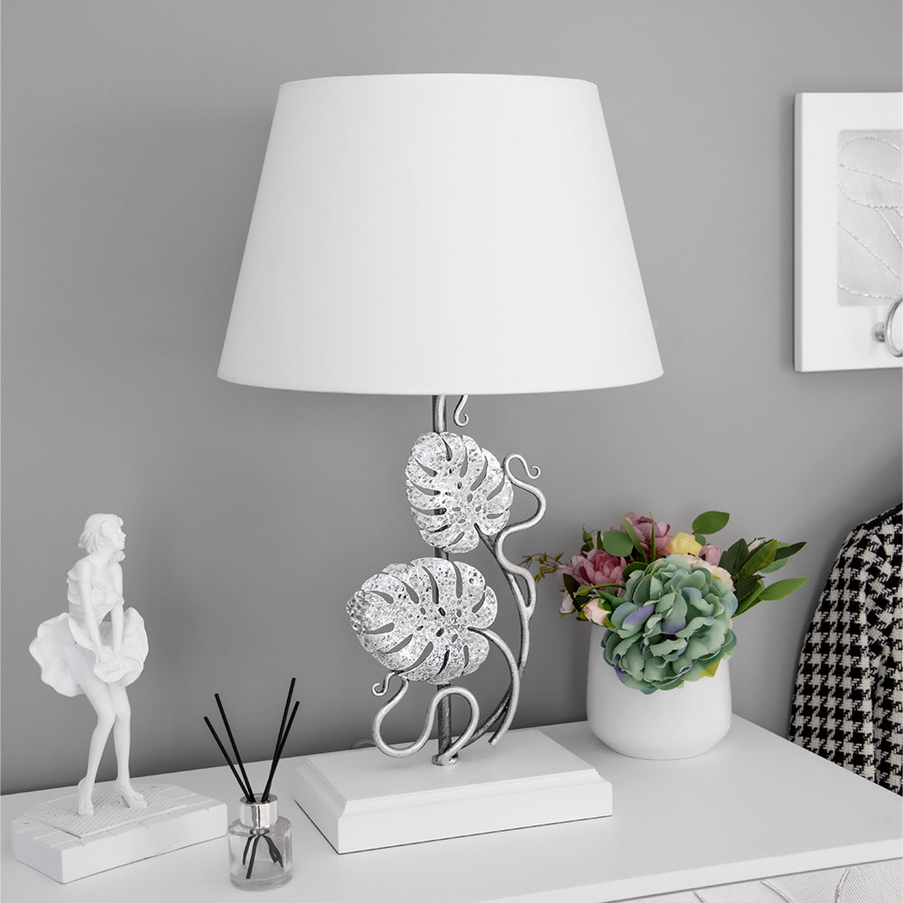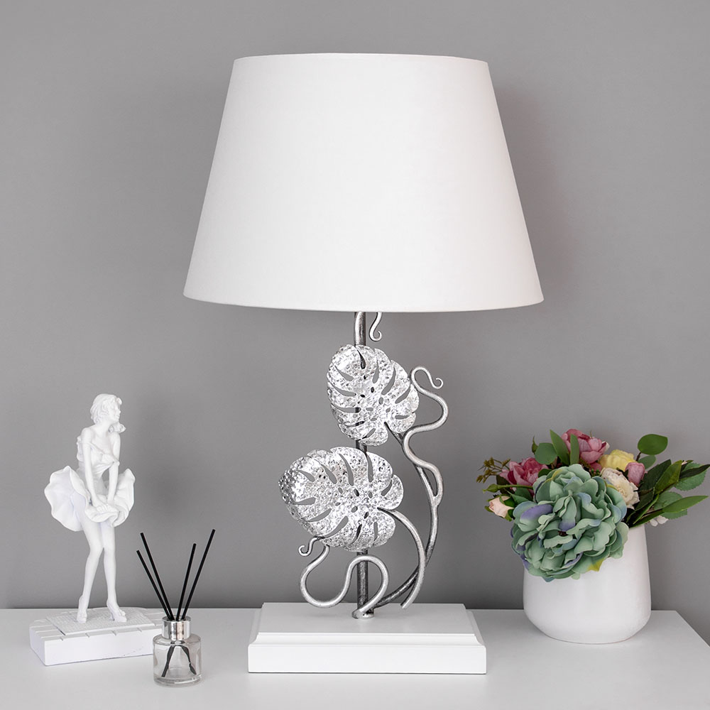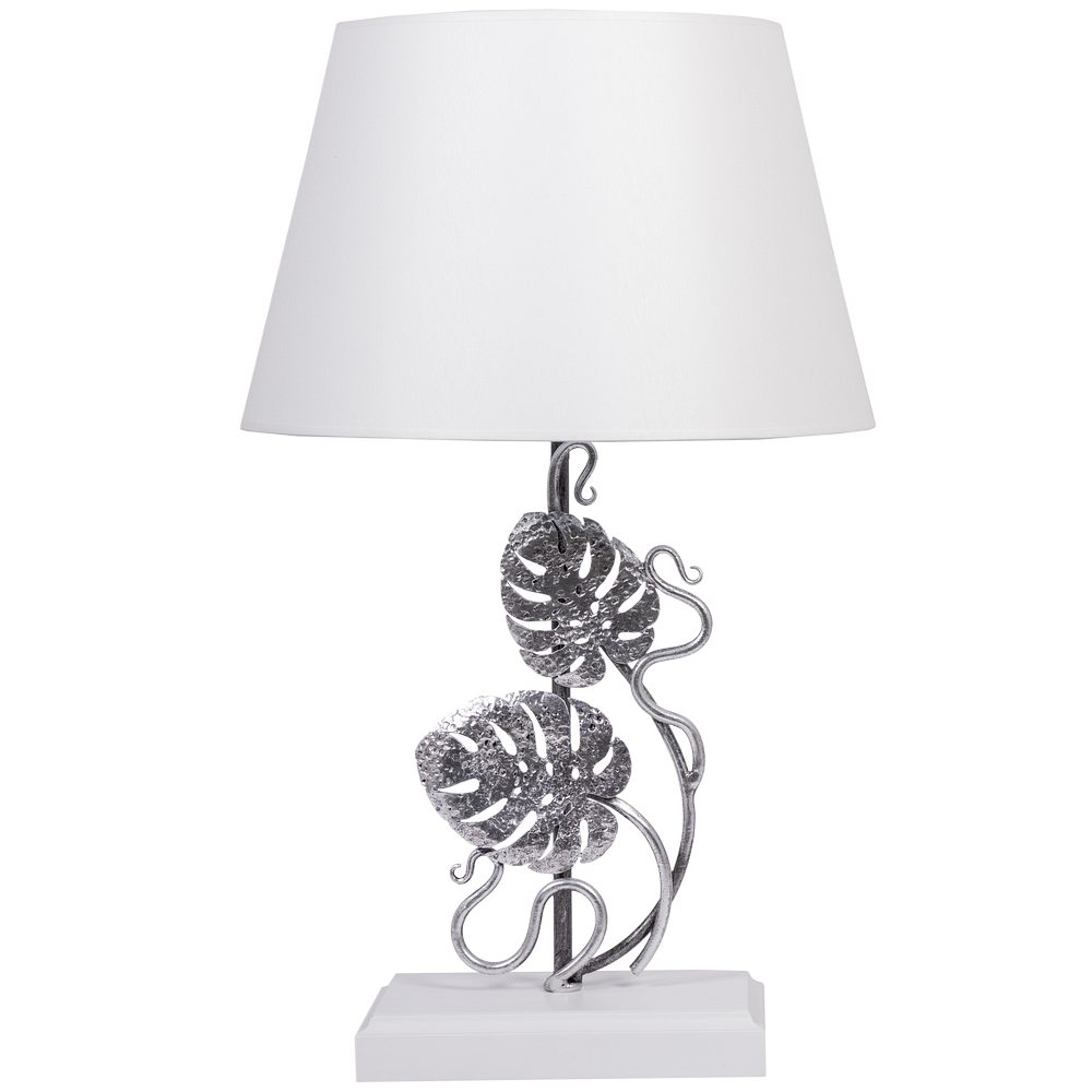 Настольная лампа Monstera Deliciosa (Монстера) Айс Античное серебро с абажуром Сити Белый