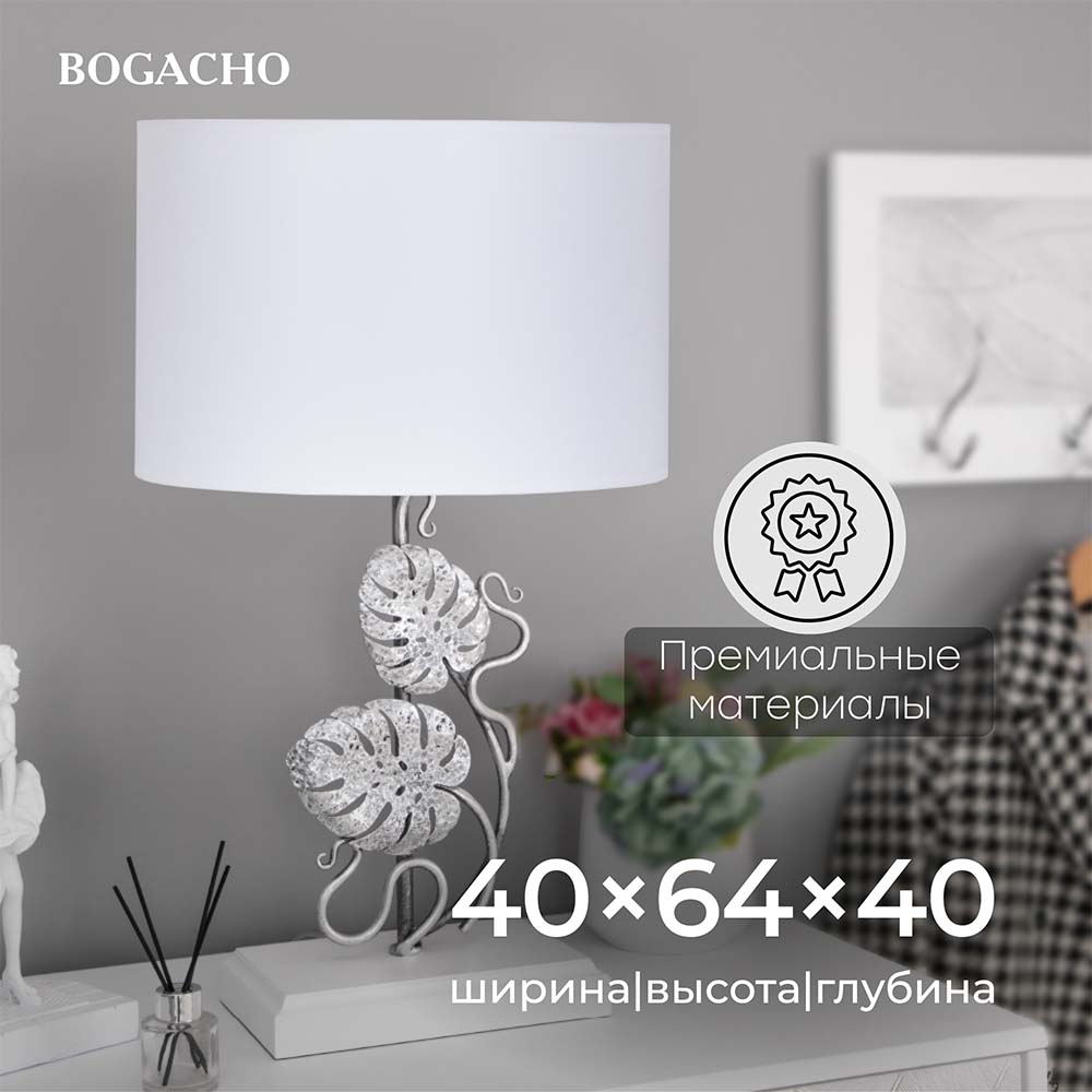 Настольная лампа Monstera Deliciosa (Монстера) Черный Античное серебро с абажуром Vintage Белый