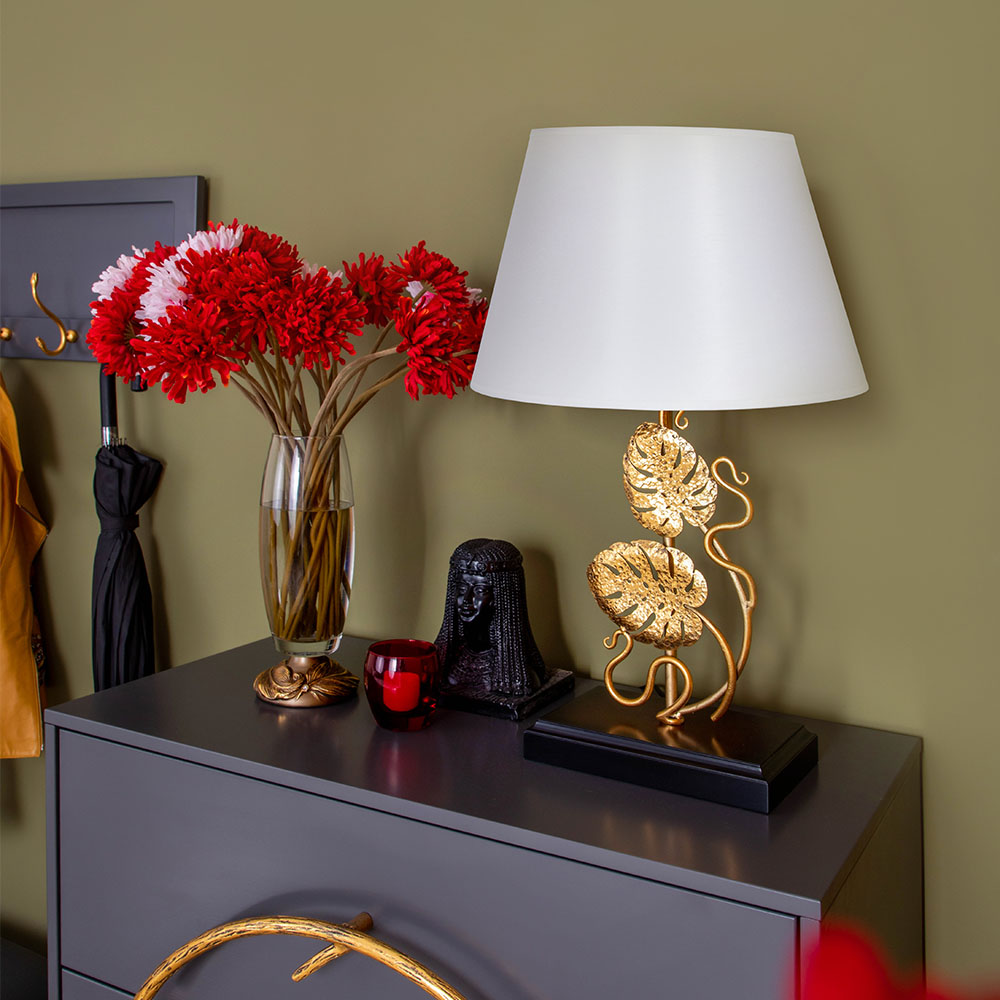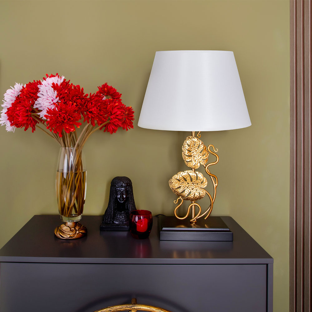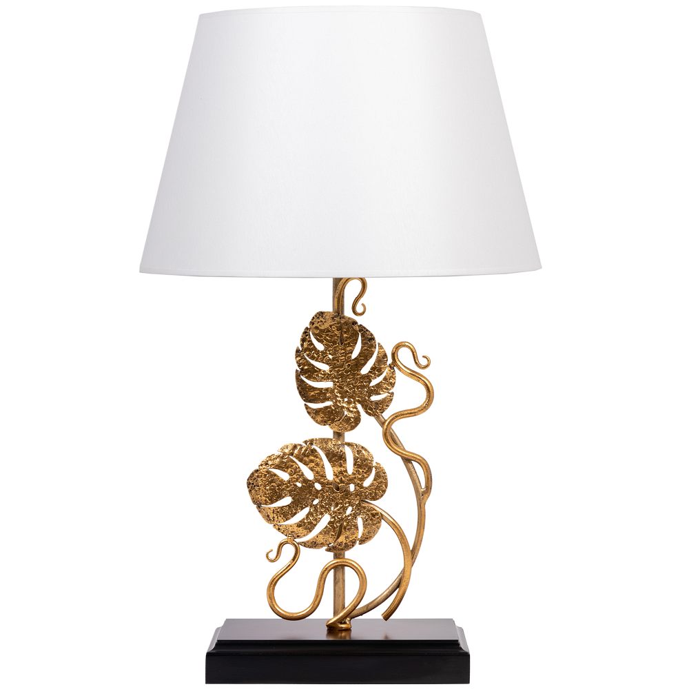 Настольная лампа Monstera Deliciosa (Монстера) Каштан Амбер с абажуром Сити Белый