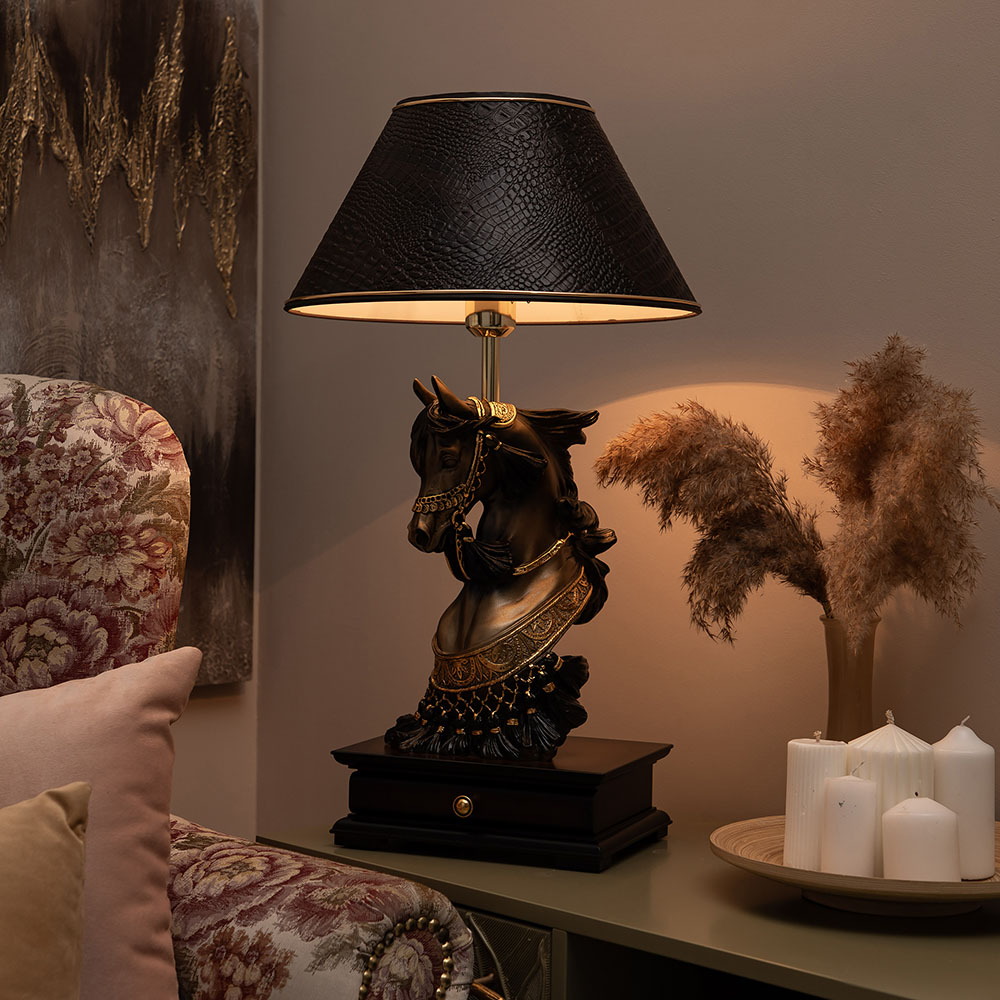 Легенда о БуцефалеПородистый конь Буцефал был столь же красив и величествен, сколь и своенравен, никого к себе не подпускал - ни военачальников, ни царских особ. Однажды 10-летний Александр Македонский решил укротить строптивое животное, хотя все вокруг были уверенны, что мальчик пострадает в этой схватке.Поединок был яростным и стремительным. Конь вставал на дыбы, бил копытами, он был страшен в своем мощном буйстве. Но все его попытки натыкались на удивительное спокойствие и твердую уверенность юного наездника, на лице которого ни дрогнул ни один мускул! И тогда Буцефал сдался.После этого Буцефал стал верным спутником Александра, сопровождал его во всех военных походах, деля с ним все тяготы и опасности, приносил удачу в многочисленных битвах и сражениях по всему миру. Им обоим суждено было стать великимии и войти в историю! Символ свободы и успехаИмператорский конь символизирует свободу и гордость, он призван вселять веру в свои силы, когда не оступаешь перед опасностями, не страшишься никаких преград, он также является талисманом, приносящим успех в делах. Репутационный подарокЭтот светильник стоит дарить людям целеустремленным, волевым, уже добившимся успехов в жизни, имеющим непререкаемый авторитет в обществе. Сложно найти лучший подарок для начальника или партнера по бизнесу. Качество и стильСветильник фабрики BOGACHO – элегантный и стильный подарок. Благодаря высокому качеству материалов, из которого он выполнен, почернение и потускнение поверхности категорически исключено. Абажур с нижним способом крепления, имеет конструкцию, основой которой служит металлический каркас с применением технологии порошковой покраски и креплением под цоколь E27(стандартный – Ø 4 см). Мощность ламп: 60W Внимание!Лампочка в комплект не входит.