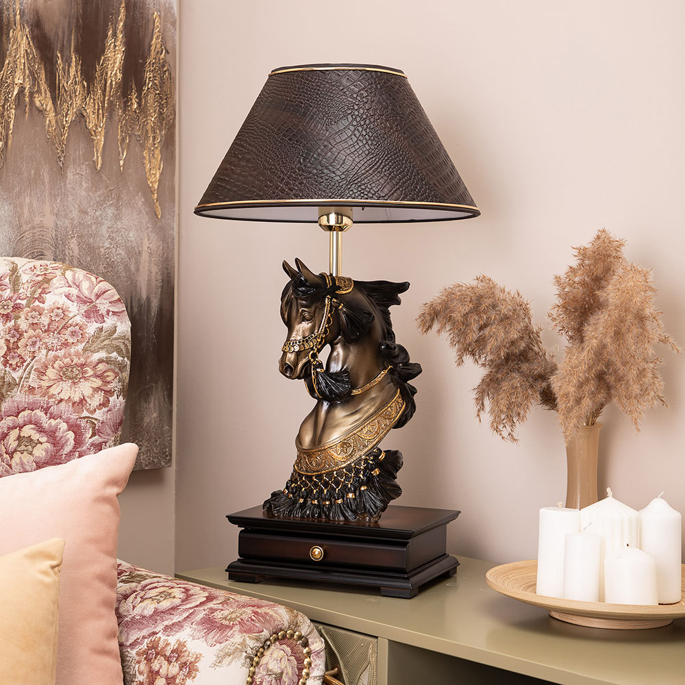 Настольная лампа с бюро Лошадь императора Бронза с абажуром 38 Mally