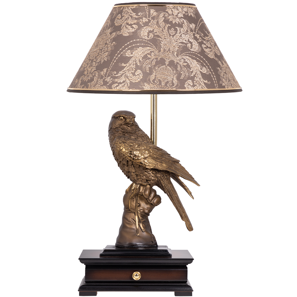 Зоркая птица, способная видеть то, что недоступно взору простого человека, она - символ защиты и безопасности, способна уберечь от зла и сглаза, талисман победы, успеха во всех делах и начинаниях. Скульптура, являющаяся центральным элементом светильника, сделана лучшими дизайнерами BOGACHO вручную из мрамора. Основанием изделия служит бюро, изготовленное из мдф. Абажур с нижним способом крепления, имеет конструкцию, основой которой служит металлический каркас с применением технологии порошковой покраски и креплением под цоколь E27. Мощность лампы 60 Ватт. Лампочка в комплект не входит.