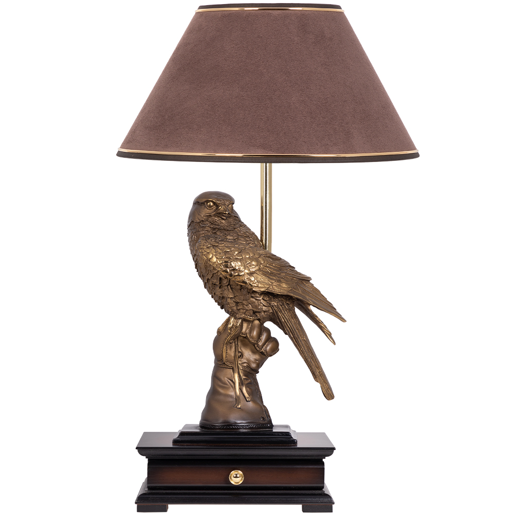 Зоркая птица, способная видеть то, что недоступно взору простого человека, она - символ защиты и безопасности, способна уберечь от зла и сглаза, талисман победы, успеха во всех делах и начинаниях. Скульптура, являющаяся центральным элементом светильника, сделана лучшими дизайнерами BOGACHO вручную из мрамора. Основанием изделия служит бюро, изготовленное из мдф. Абажур с нижним способом крепления, имеет конструкцию, основой которой служит металлический каркас с применением технологии порошковой покраски и креплением под цоколь E27. Мощность лампы 60 Ватт. Лампочка в комплект не входит.