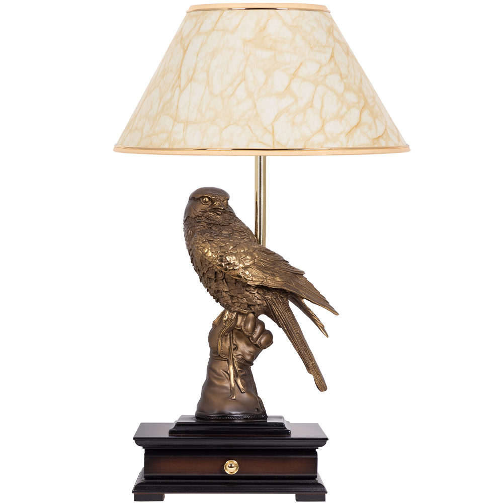 Зоркая птица, способная видеть то, что недоступно взору простого человека, она - символ защиты и безопасности, способна уберечь от зла и сглаза, талисман победы, успеха во всех делах и начинаниях. Скульптура, являющаяся центральным элементом светильника, сделана лучшими дизайнерами BOGACHO вручную из мрамора. Основанием изделия служит бюро, изготовленное из мдф. Абажур с нижним способом крепления, имеет конструкцию, основой которой служит металлический каркас с применением технологии порошковой покраски и креплением под цоколь E27. Мощность лампы 60 Ватт. Лампочка в комплект не входит.