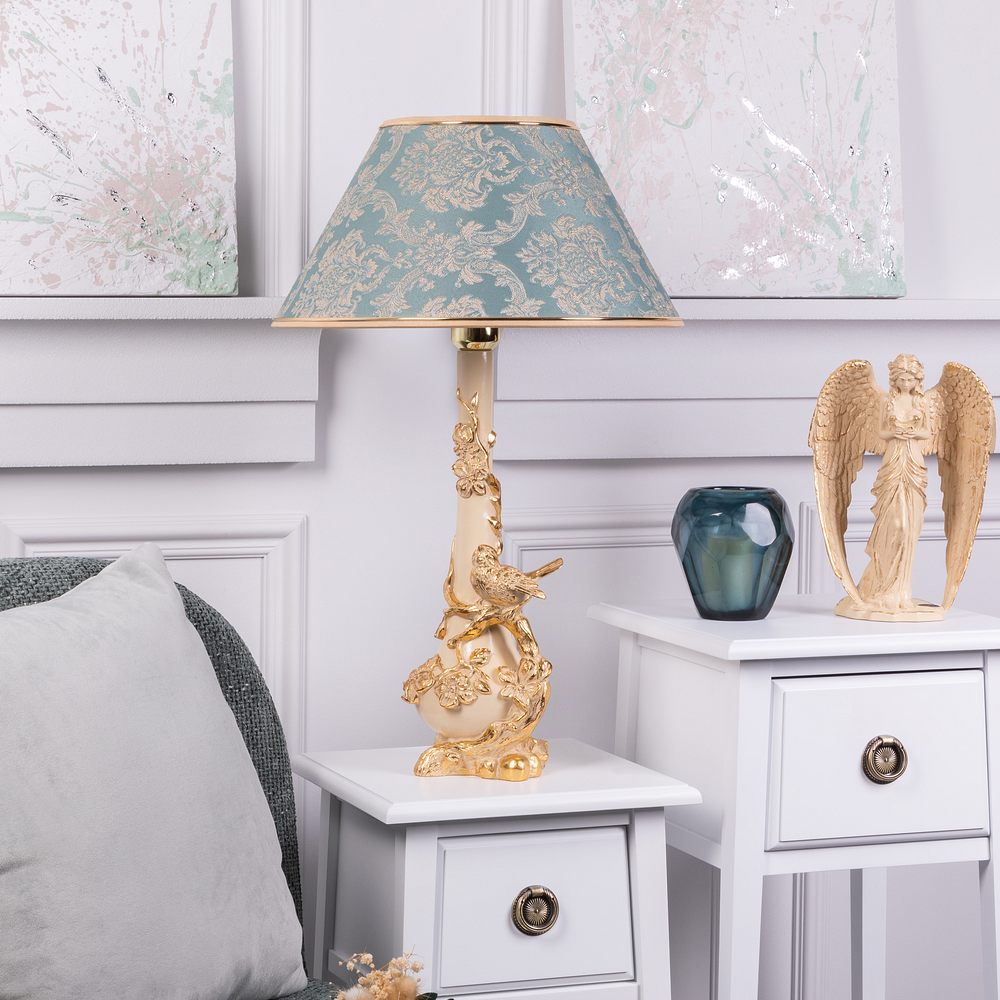 Настольная лампа Терра Айвори с абажуром №38 Vatican (Ватикан) Аквамарин