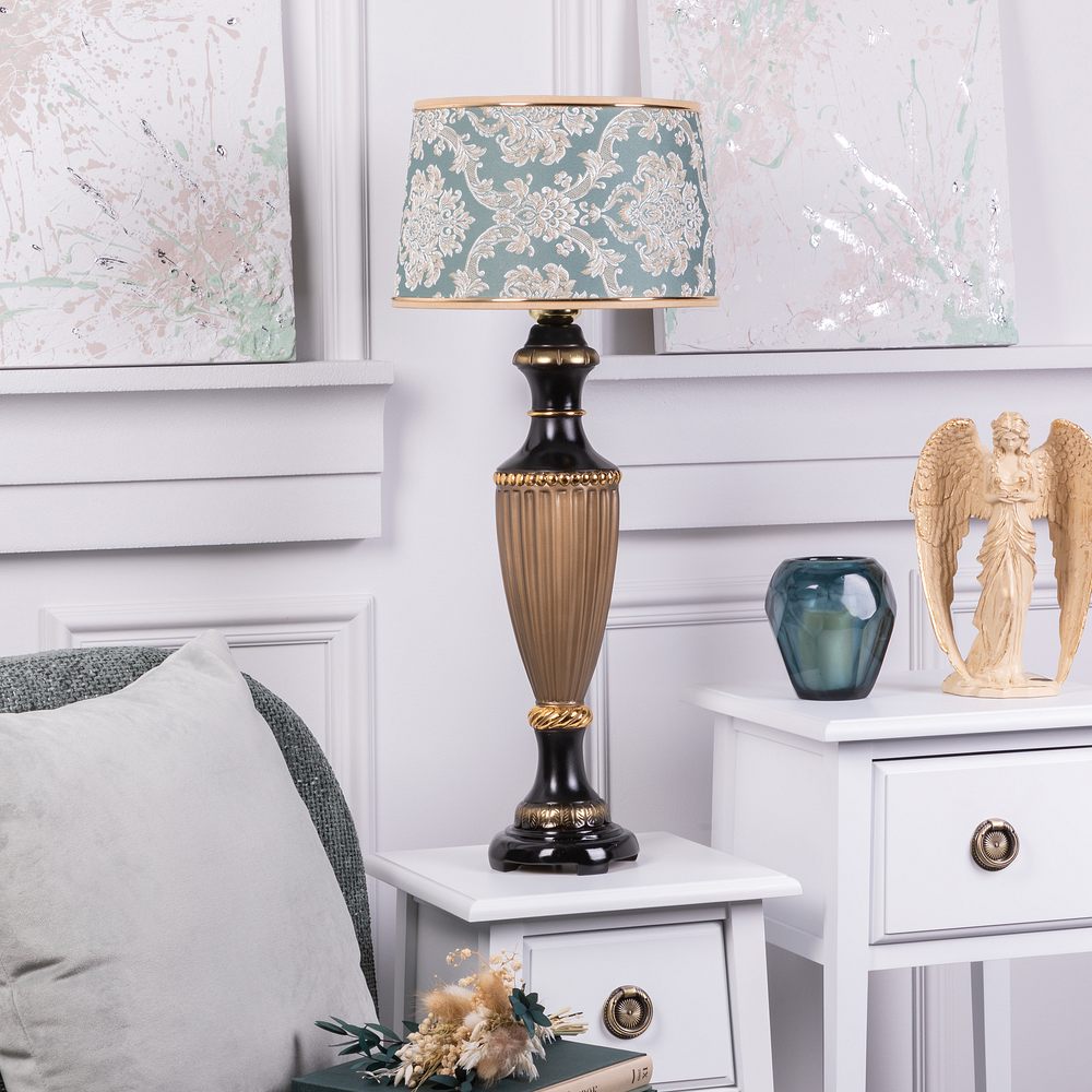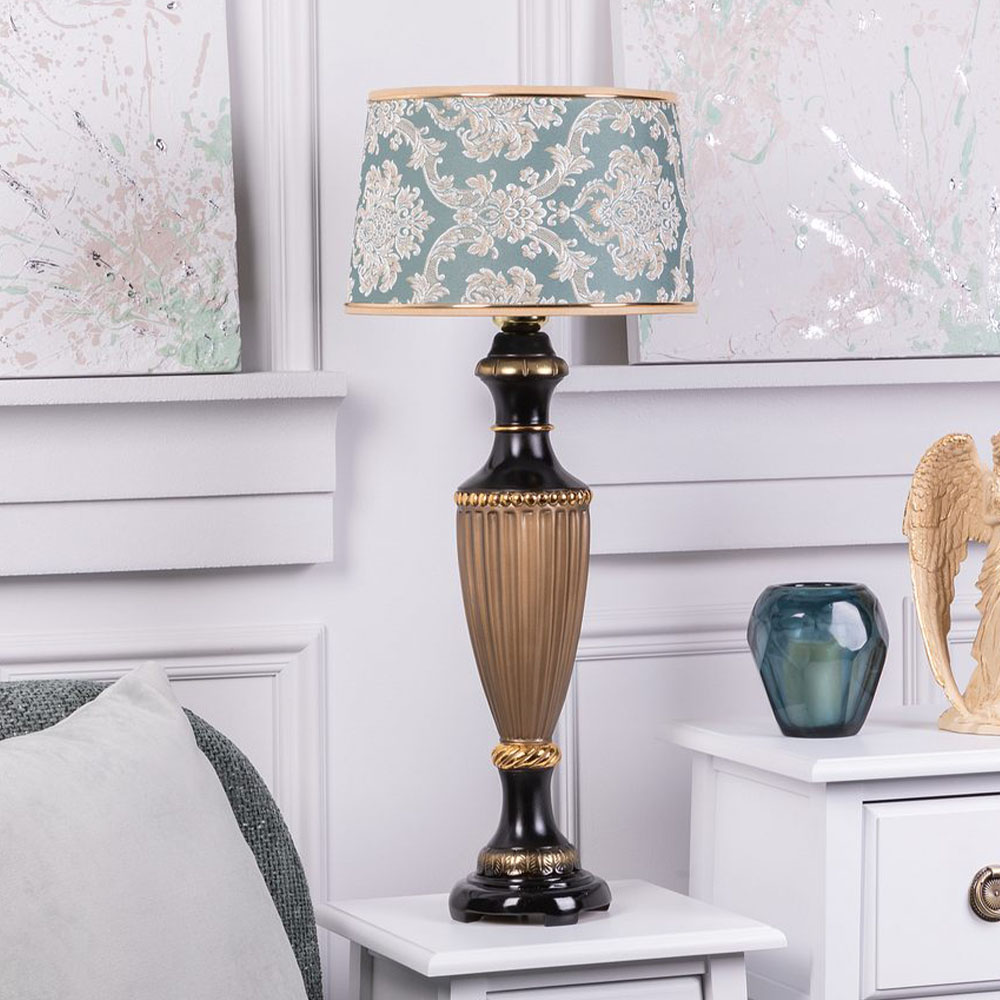 Настольная лампа Ваза Ребристая Бронза с абажуром Тюссо Vatican (Ватикан) Аквамарин