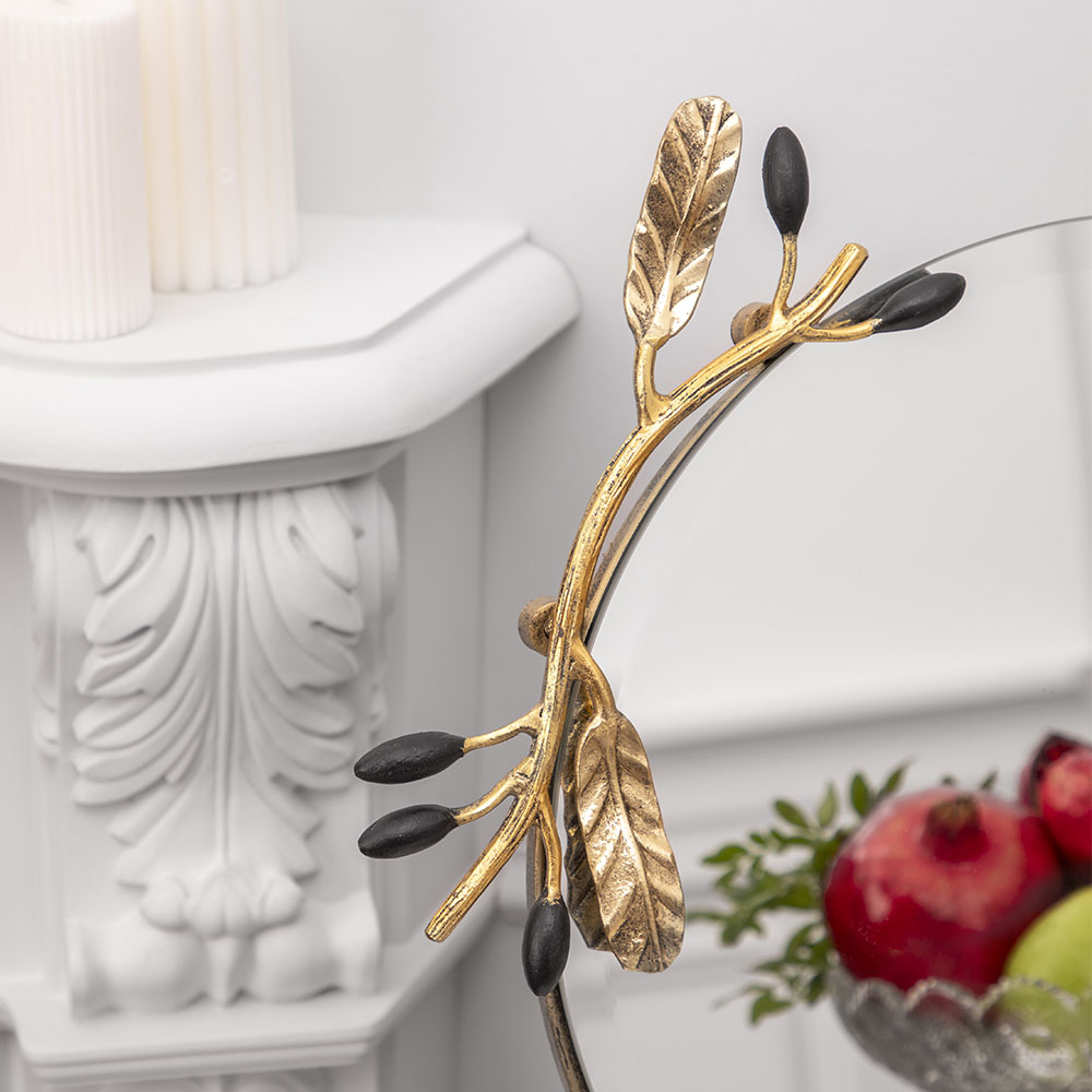 Увеличить пространство гардеробной, гостиной или холла легко вместе с интерьерными зеркалами BOGACHO.Зеркальное полотно закреплено на металлической раме из легированной стали. Декоративные элементы отлиты из натурального коелгинского мрамора, отшлифованы и патинированы вручную. Диаметр зеркального полотна: 36,8см. Толщина: 4мм.Интерьерное зеркало BOGACHO Oliva Branch Бронзового цвета отлично подойдёт для пространства в эко-стиле, стиле Прованс или Арт-деко.Внесите завершающий штрих в свой интерьер вместе с эксклюзивными изделиями BOGACHO.
