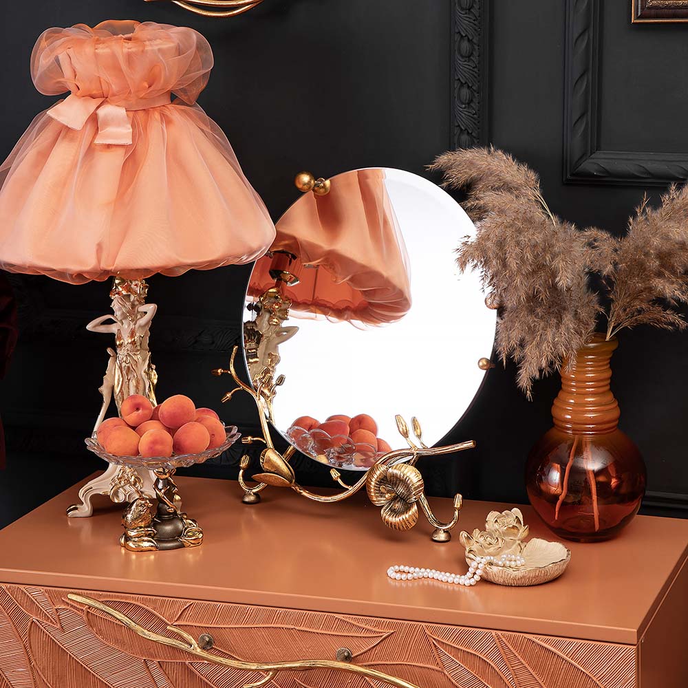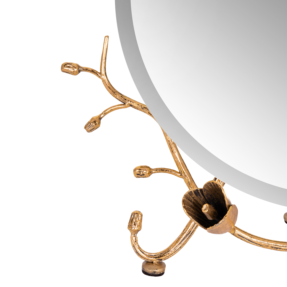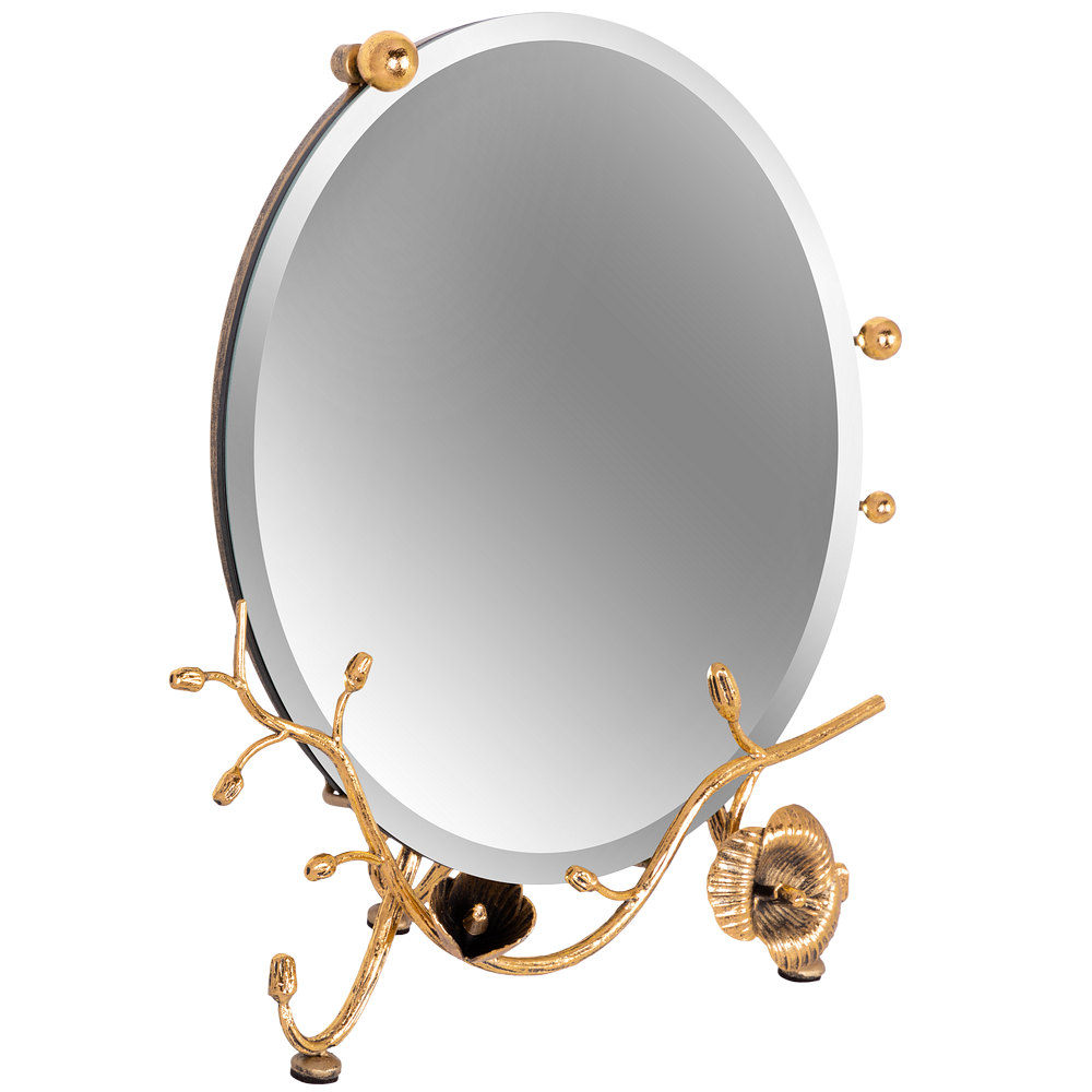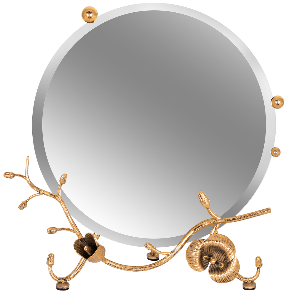 Настольное зеркало с каркасом из кованой стали Орхидея. Увеличить пространство гардеробной, гостиной или холла легко вместе с интерьерными зеркалами BOGACHO. Зеркальное полотно закреплено на металлической раме из легированной стали. Диаметр зеркального полотна: 36,8см. толщина: 4мм. Декоративные элементы отлиты из натурального коелгинского мрамора, отшлифованы и патинированы вручную. Интерьерное зеркало отлично подойдёт для пространства в эко-стиле, стиле Прованс или Арт-деко. Внесите завершающий штрих в свой интерьер вместе с эксклюзивными изделиями BOGACHO.