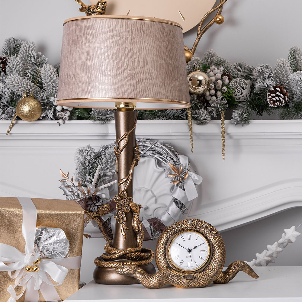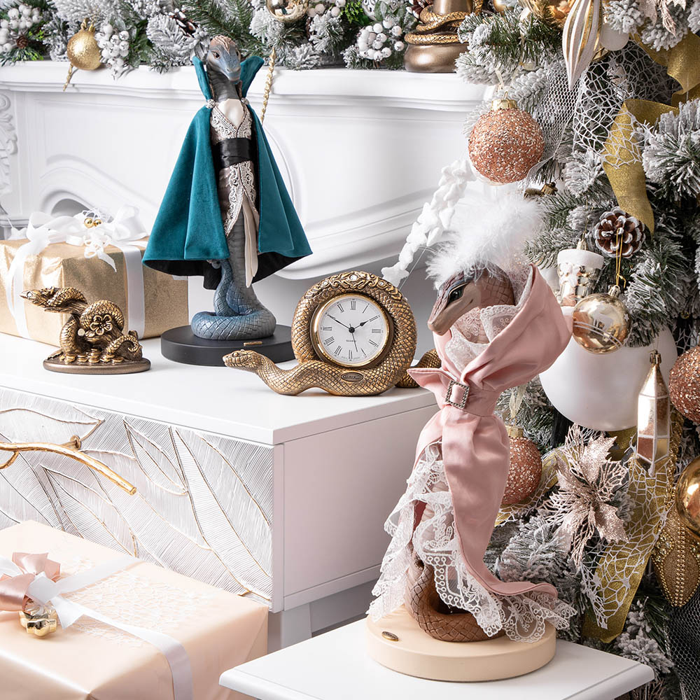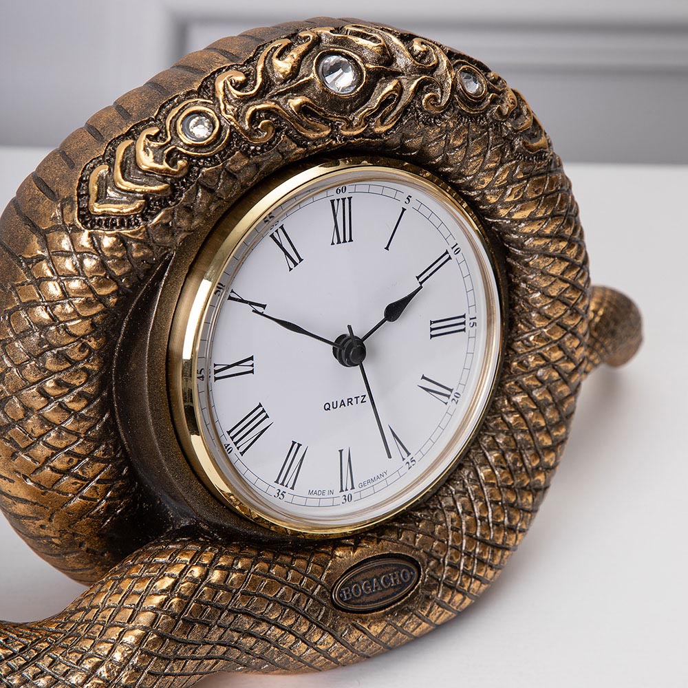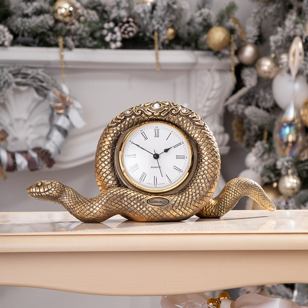 Часы Змея Линда Символ года 2025 – роскошный предмет интерьера, который используется в качестве элегантного акцента в обстановке. Часы настольные - полезное и стильное украшение для дома, для офиса, дачи, квартиры. Элегантные, необыкновенной красоты модели настольных часов словно созданы для того чтобы, стать украшением для дома.
