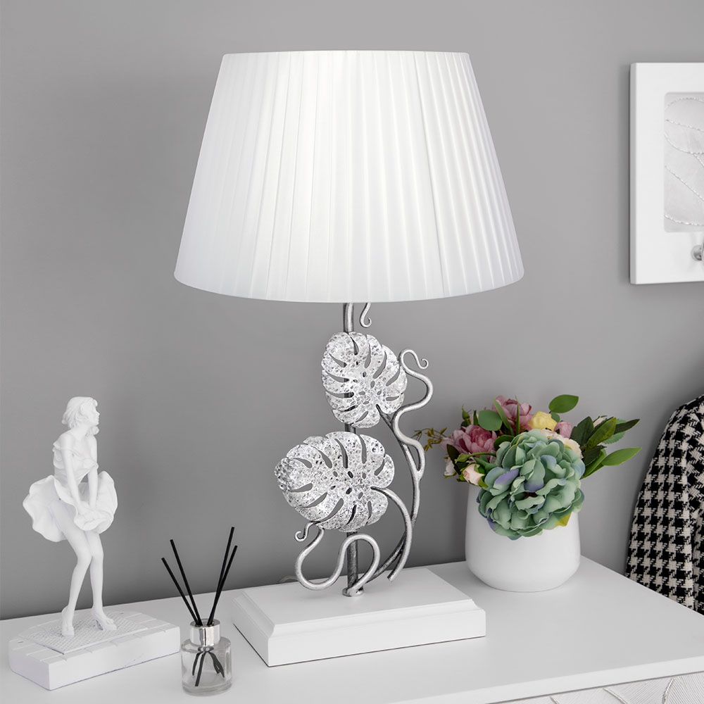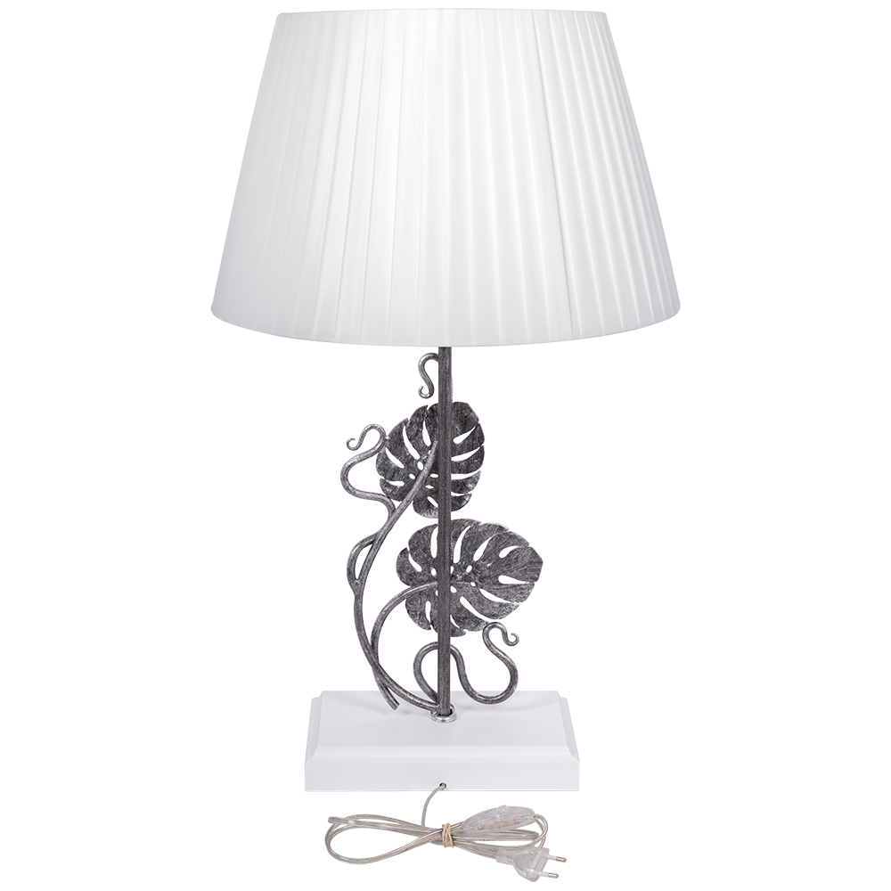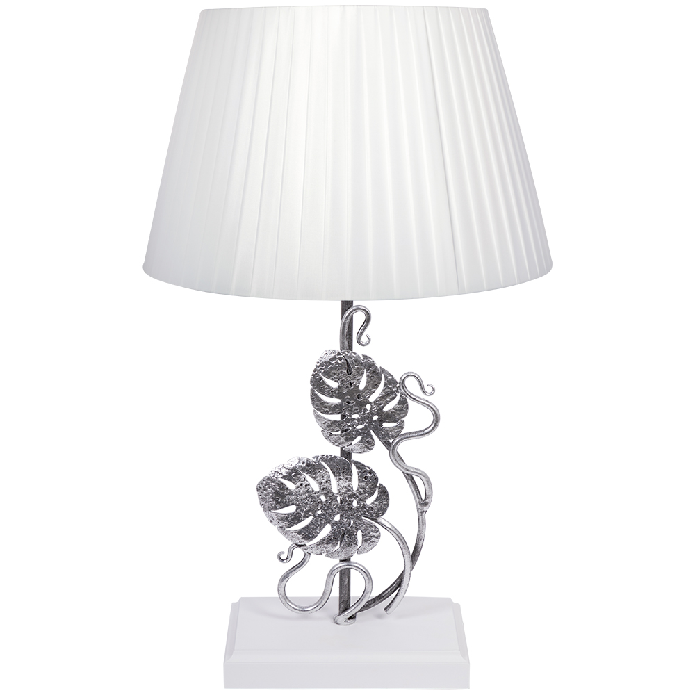 Настольный светильник Monstera Deliciosa (Монстера) Айс Античное серебро с абажуром Шебби белый