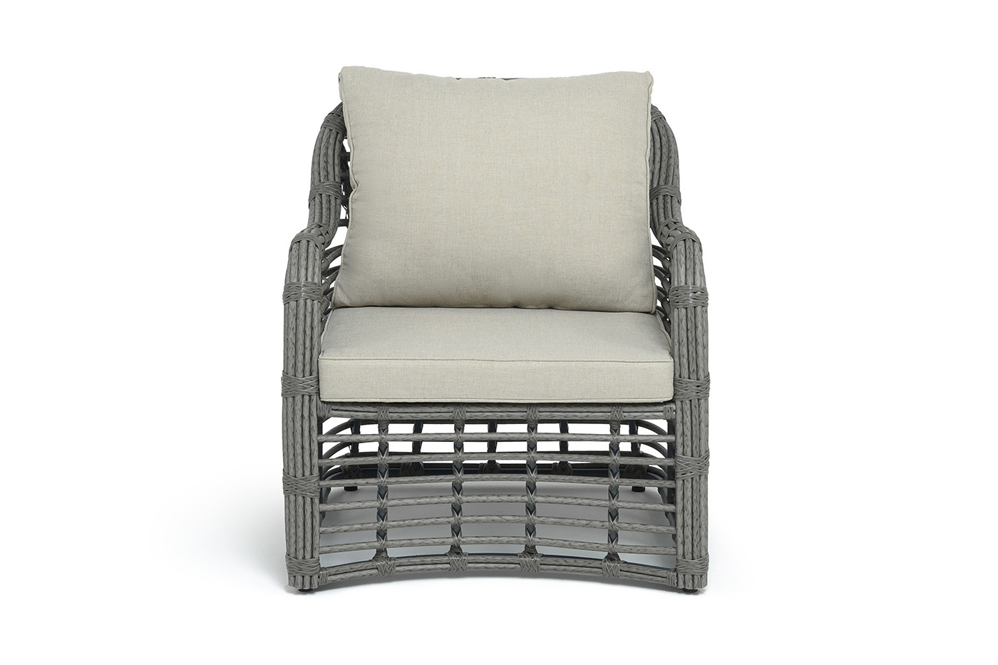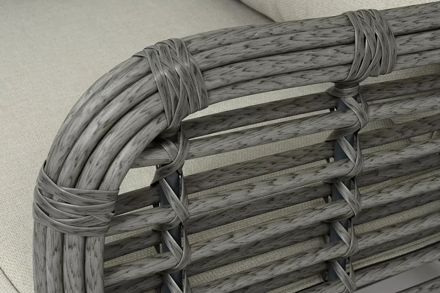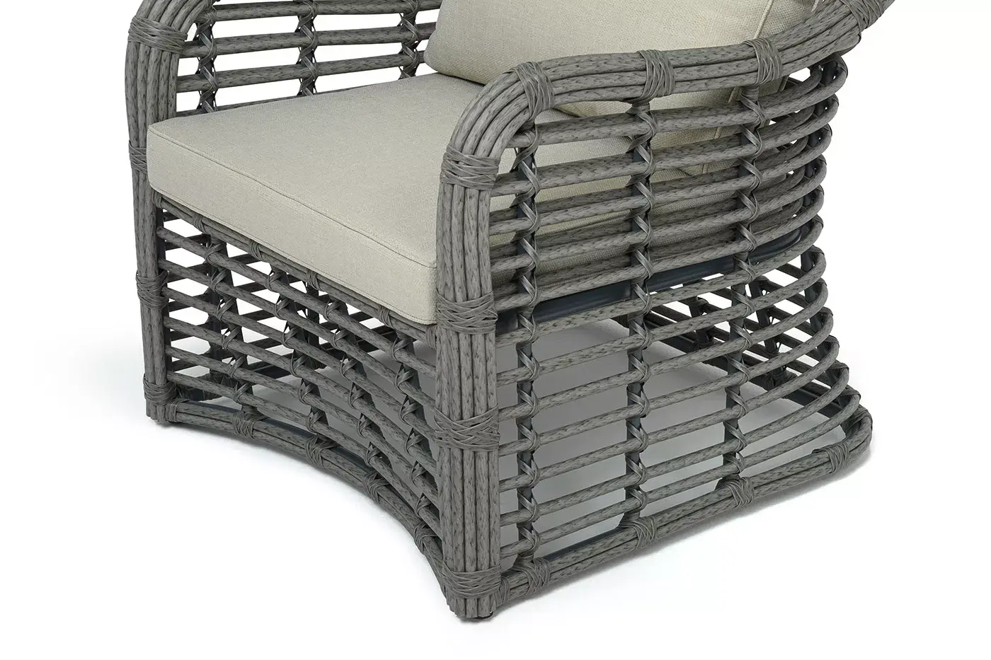 Каркас мебели сделан из прочного алюминия с высокими эксплуатационными качествами. Оплетен вручную с помощью круглого искусственного ротанга. Представлено в сером оттенке.