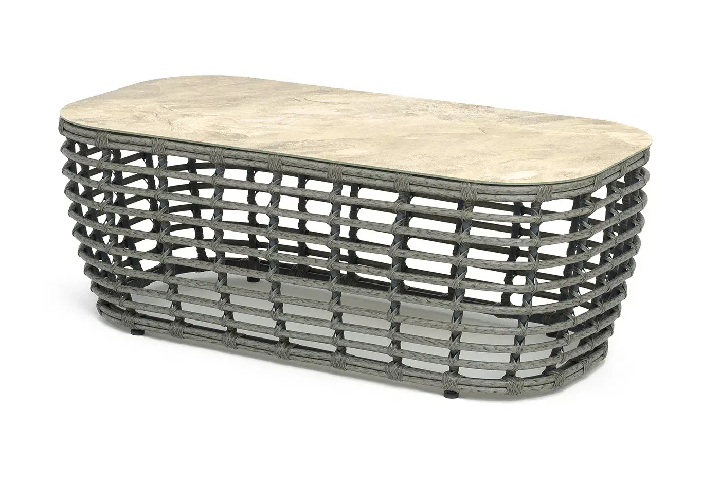 Плетеный столик представлен в сером цвете.