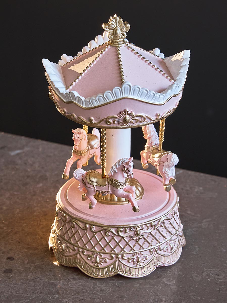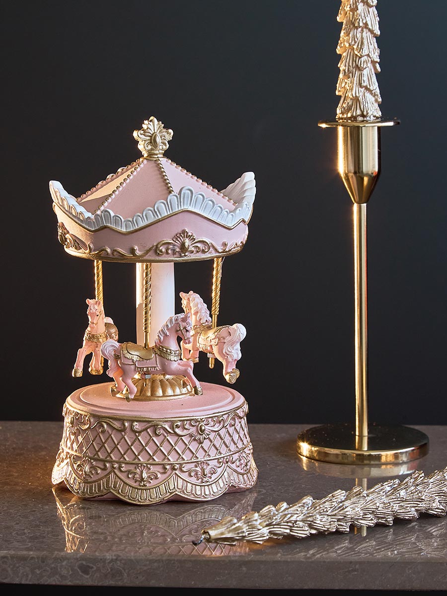 Зефирно-розовый новогодний музыкальный декор Magic Melody из коллекции New Year Essential словно оживляет волшебную сказку, где каждый поворот приносит новые чудеса и дарит надежду на исполнение желаний. Механическая карусель с традиционной рождественской мелодией символизирует преемственность поколений и сохранение семейных обычаев, когда каждое украшение несет особый смысл.