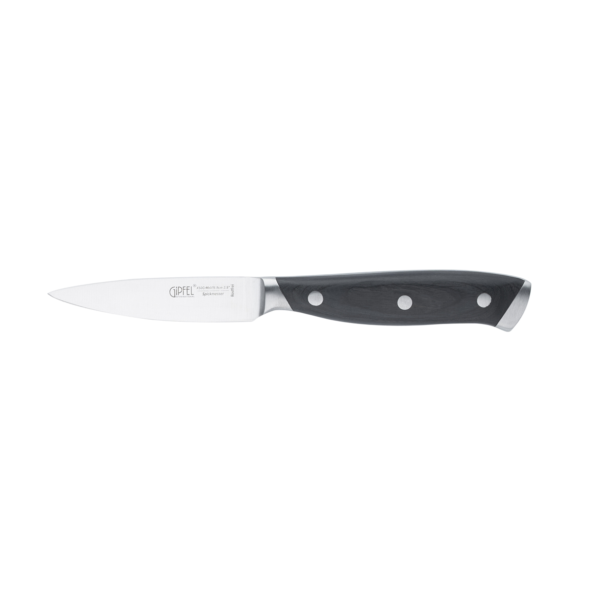 Нож для чистки овощей Gipfel AMBASSADOR 50446 9 см. Материал лезвия: сталь X50CrMoV15. Материал ручки: сталь, древеснослоистый пластик. Толщина: 2,0 мм.